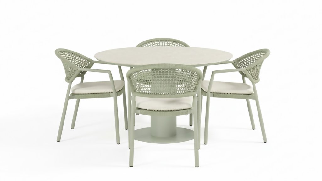 1 x Hartman Girona tafel Alu-Soft Green - Ceramic Beige Ø120cm