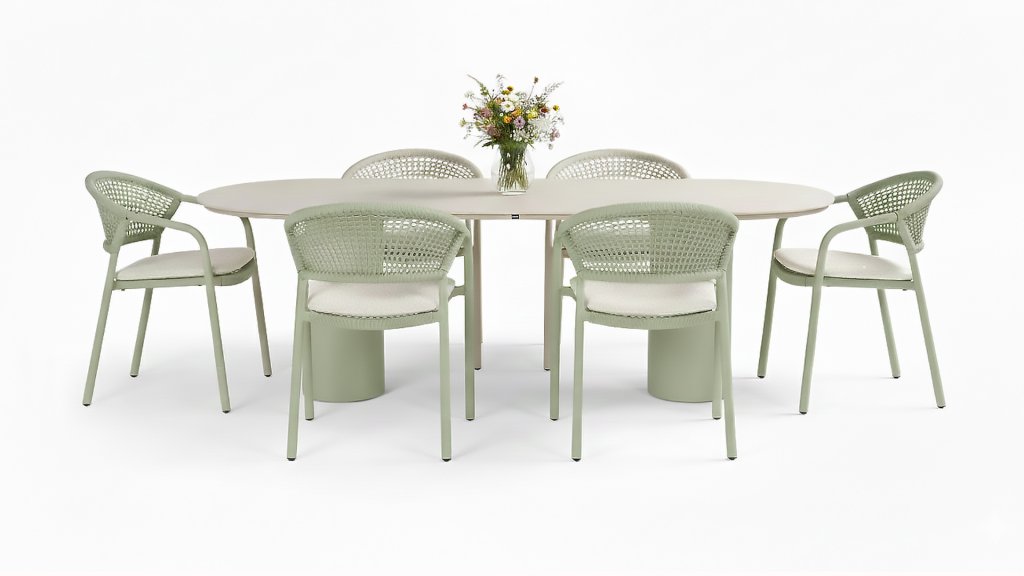 1 x Hartman Valencia tafel Alu Soft Green - Ceramic Beige 220x100cm