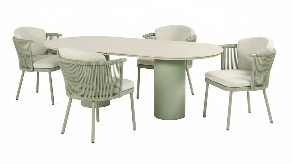 1 x Hartman Valencia tafel Alu Soft Green - Ceramic Beige 220x100cm