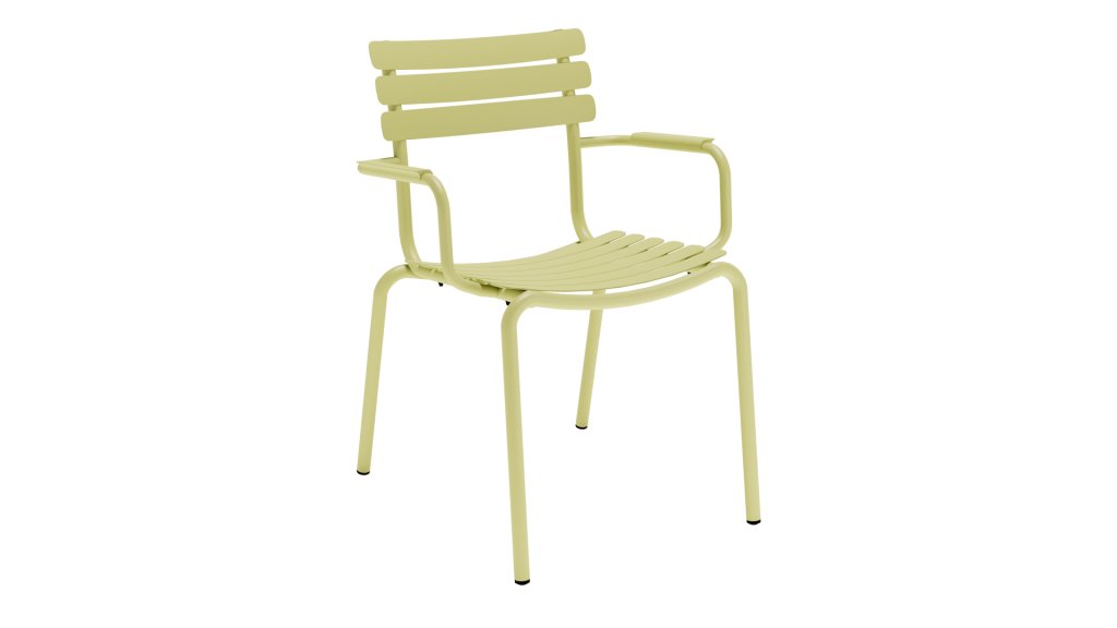 ALUA is verkrijgbaar in 6 kleuren: Muted White / Black / Beige / Cayenne / Ice Blue / Olive Green en biedt de keuze tussen modellen met of zonder armleuningen. Ontworpen voor eenvoudig stapelen, kan tot 10 stuks worden gestapeld. De gebogen aluminium latten zijn zo gevormd dat u een comfortabele zitervaring krijgt en de stoel een zachte en uitnodigende uitstraling geeft.