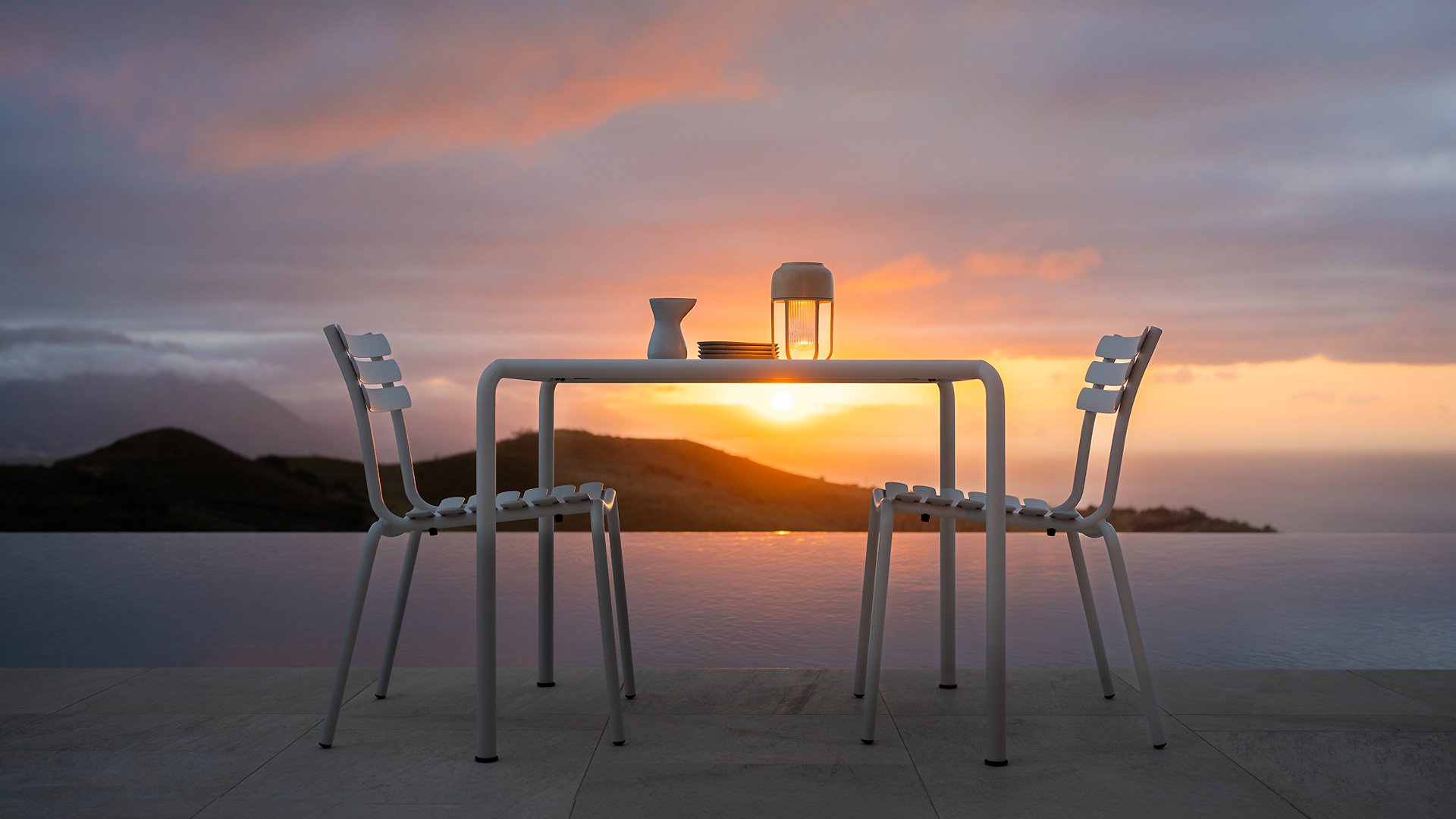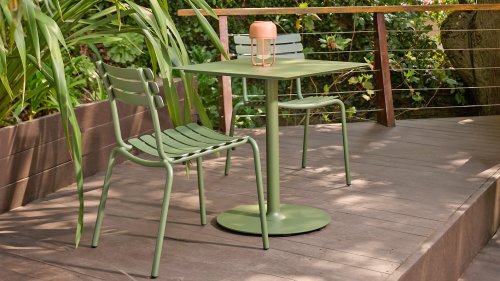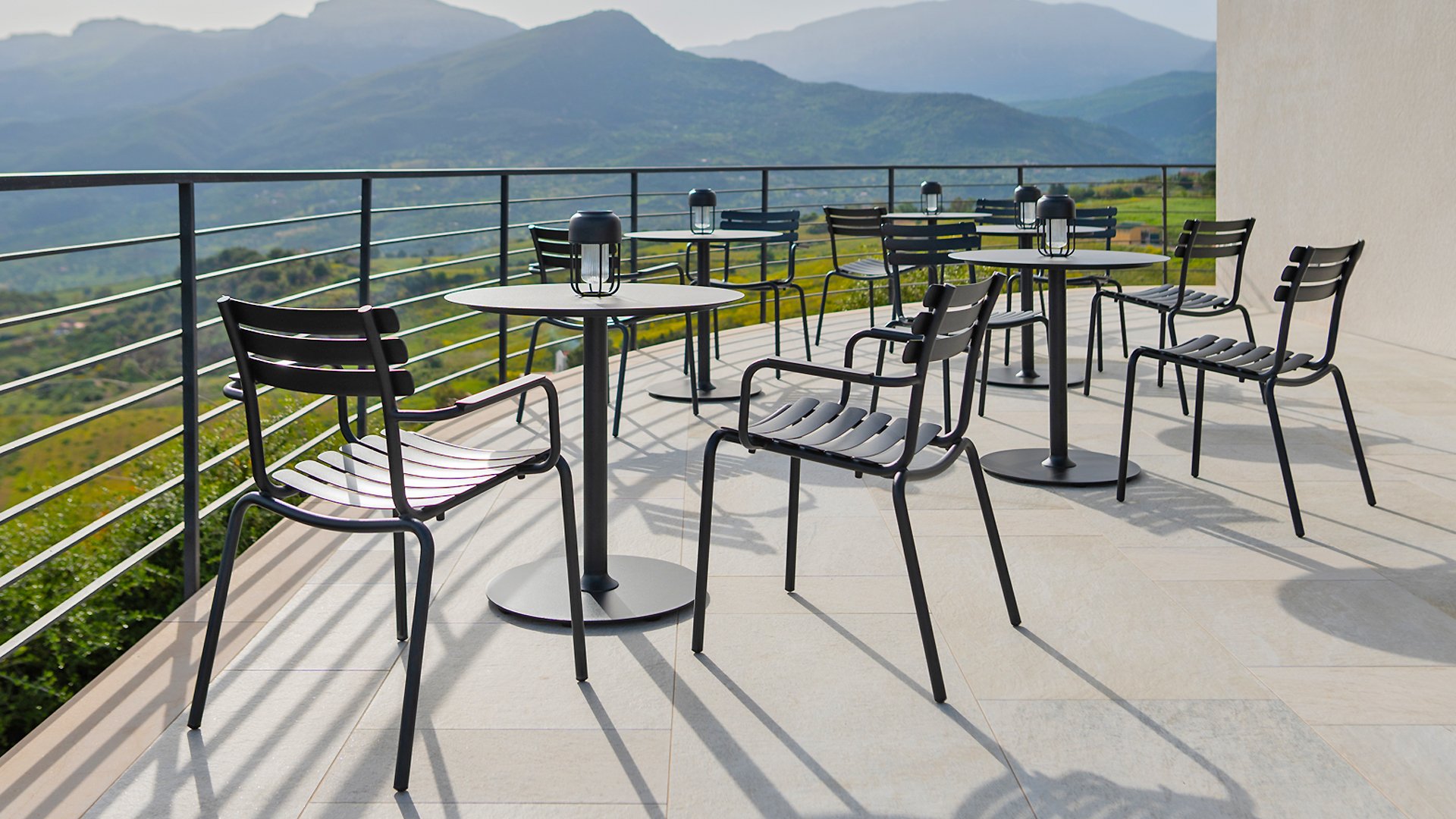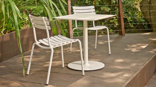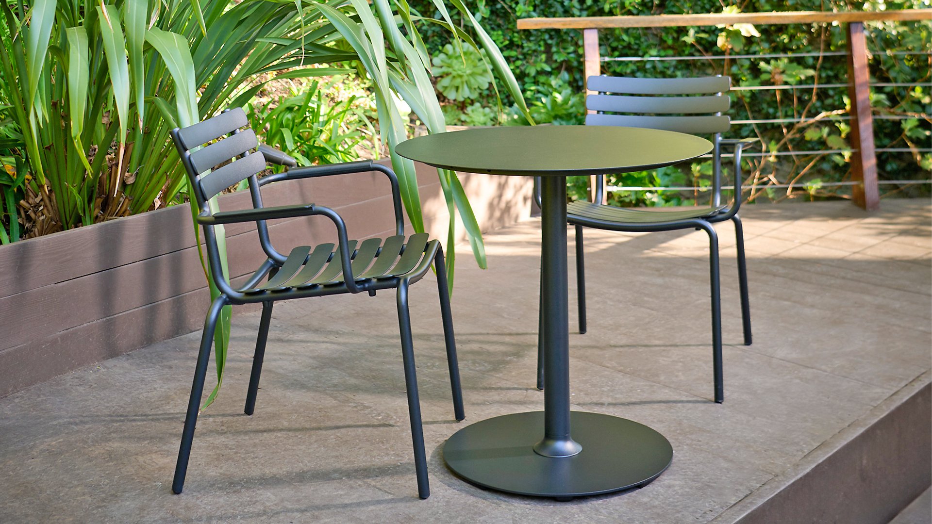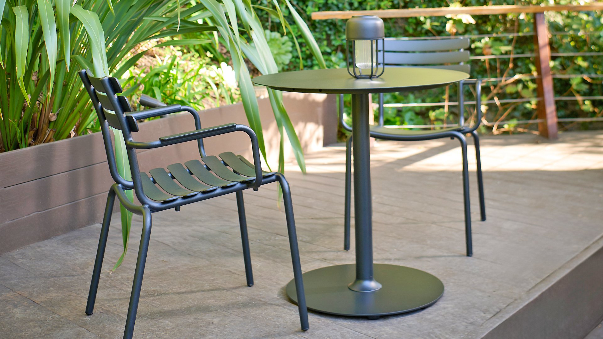 ALUA is verkrijgbaar in 6 kleuren: Muted White / Black / Beige / Cayenne / Ice Blue / Olive Green en biedt de keuze tussen modellen met of zonder armleuningen. Ontworpen voor eenvoudig stapelen, kan tot 10 stuks worden gestapeld. De gebogen aluminium latten zijn zo gevormd dat u een comfortabele zitervaring krijgt en de stoel een zachte en uitnodigende uitstraling geeft.