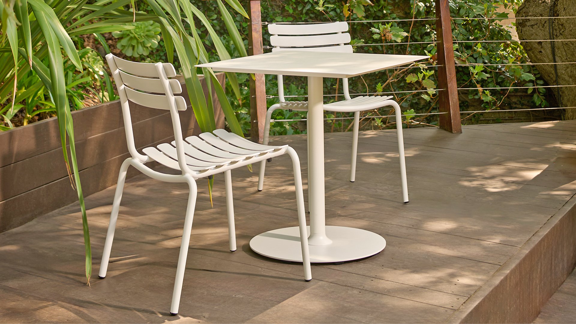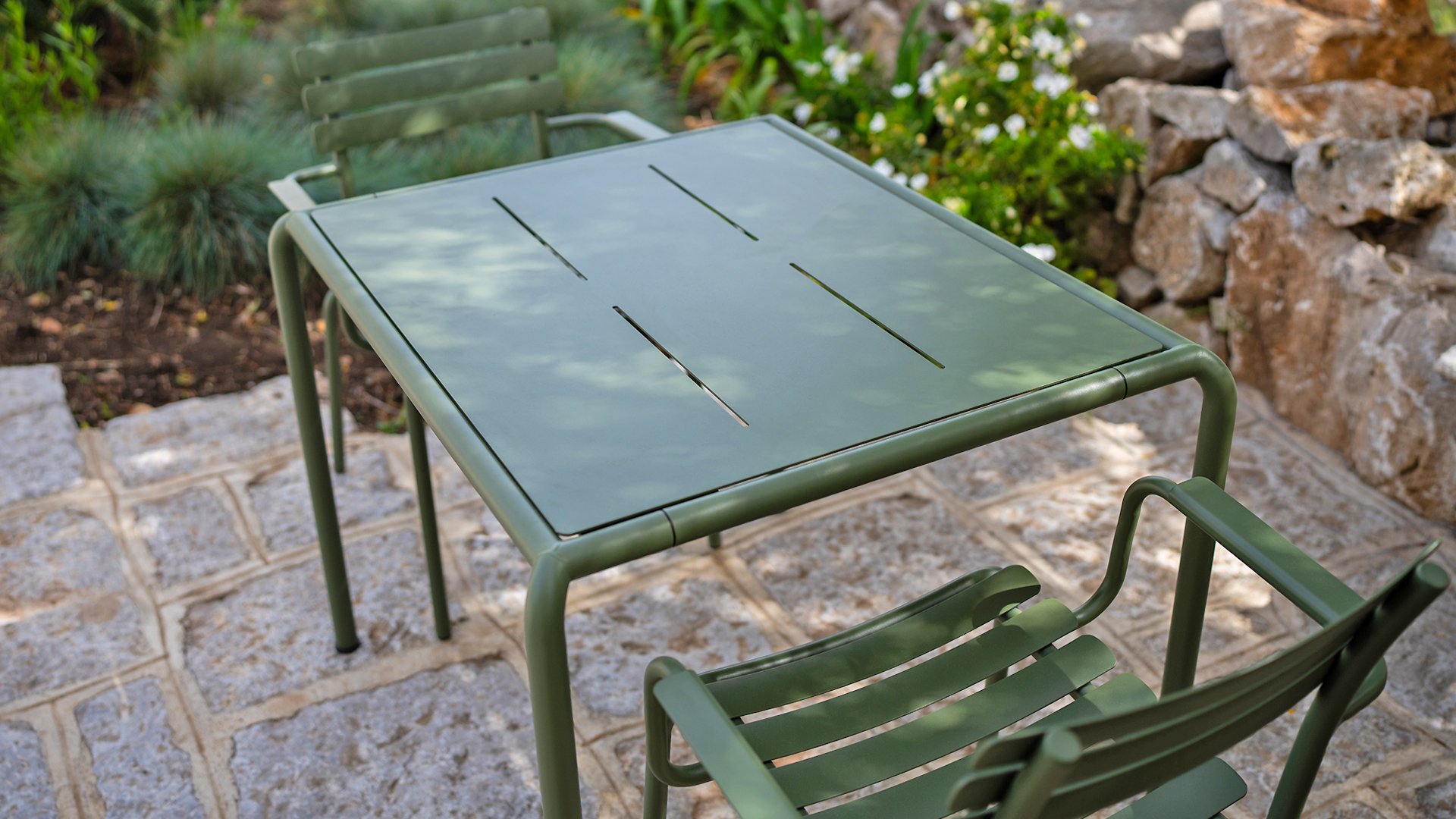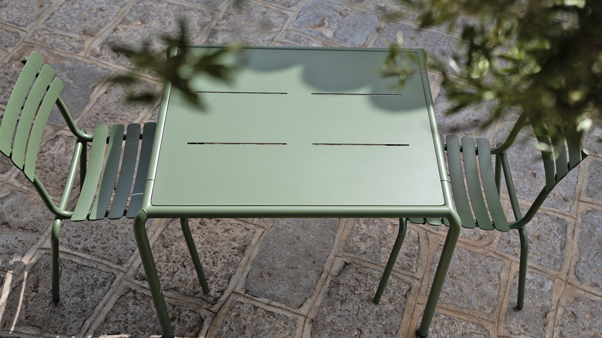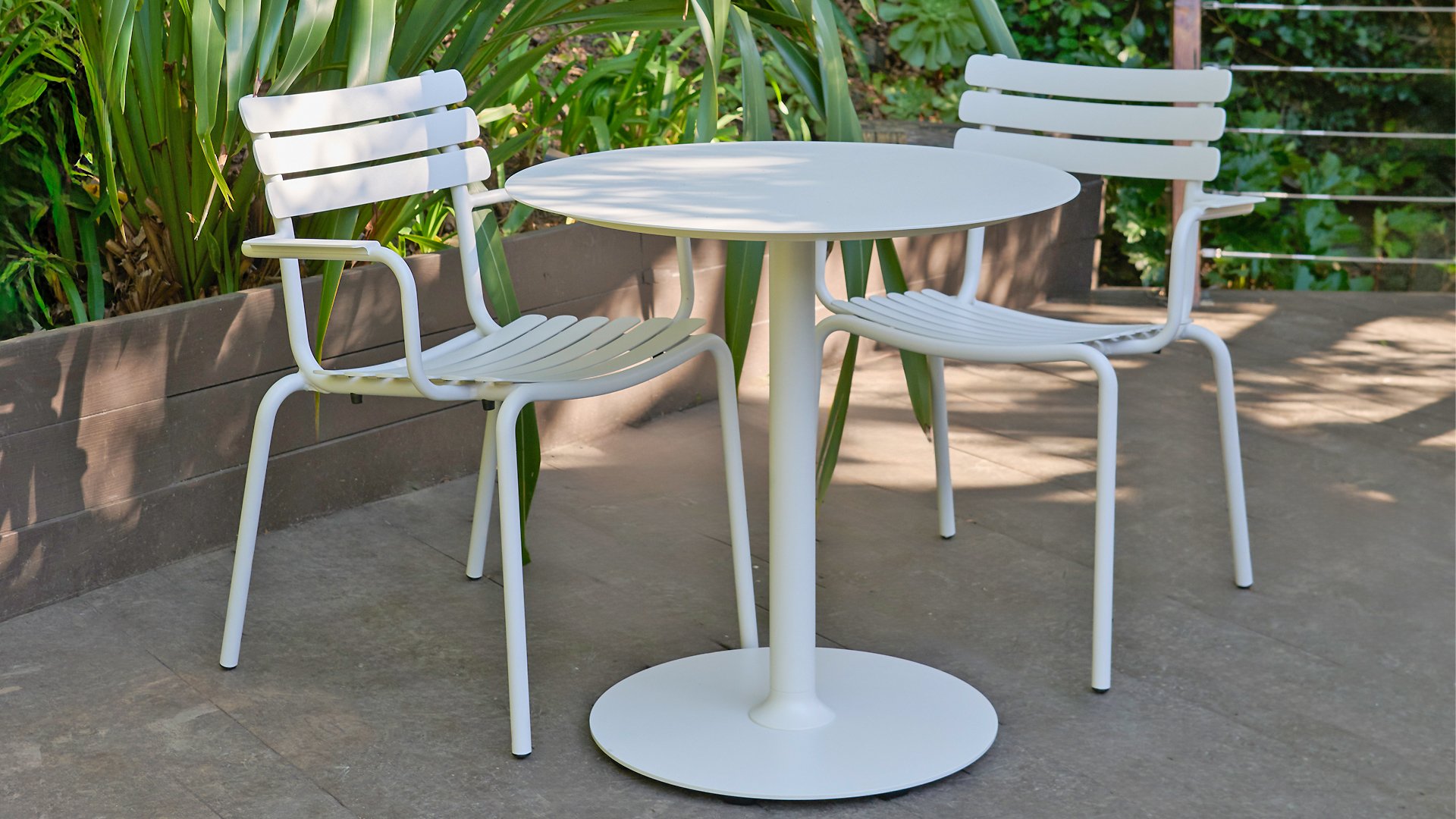 ALUA is verkrijgbaar in 6 kleuren: Muted White / Black / Beige / Cayenne / Ice Blue / Olive Green en biedt de keuze tussen modellen met of zonder armleuningen. Ontworpen voor eenvoudig stapelen, kan tot 10 stuks worden gestapeld. De gebogen aluminium latten zijn zo gevormd dat u een comfortabele zitervaring krijgt en de stoel een zachte en uitnodigende uitstraling geeft.
