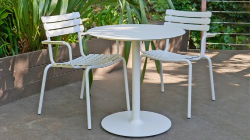 ALUA is een veelzijdige aluminium dining chair, ontworpen voor tal van verschillende omgevingen, of het nu een privébalkon, een openbaar park of een restaurant is. De stoel is gebouwd naar het ontwerpconcept van de HOUE ReCLIPS Eetkamerstoel en vereist minimaal onderhoud.