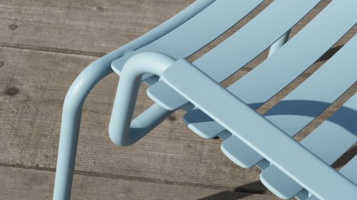 ALUA is verkrijgbaar in 6 kleuren: Muted White / Black / Beige / Cayenne / Ice Blue / Olive Green en biedt naast een loungechair ook een diningchair, met of zonder armleuning. De gebogen aluminium latten zijn zo gevormd dat u een comfortabele zitervaring krijgt en de stoel een zachte en uitnodigende uitstraling geeft.