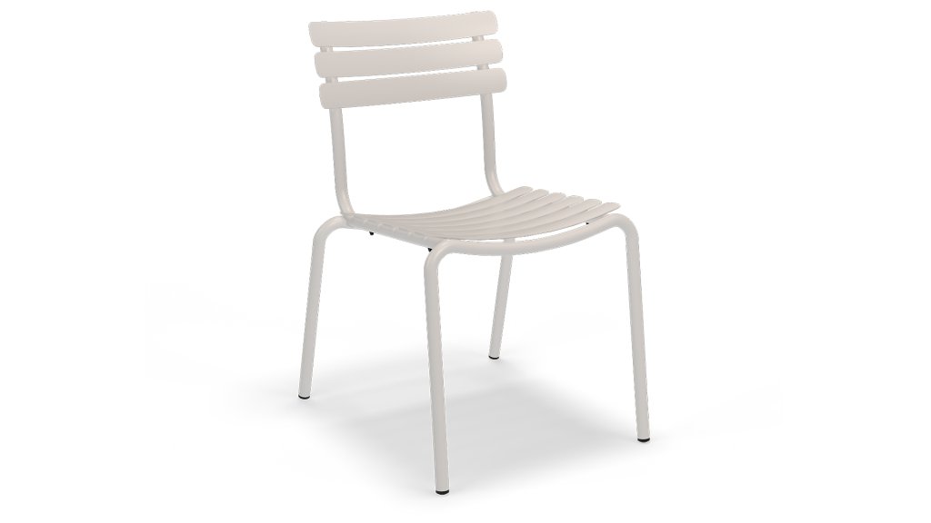 ALUA is verkrijgbaar in 6 kleuren: Muted White / Black / Beige / Cayenne / Ice Blue / Olive Green en biedt de keuze tussen modellen met of zonder armleuningen. Ontworpen voor eenvoudig stapelen, kan tot 10 stuks worden gestapeld. De gebogen aluminium latten zijn zo gevormd dat u een comfortabele zitervaring krijgt en de stoel een zachte en uitnodigende uitstraling geeft.