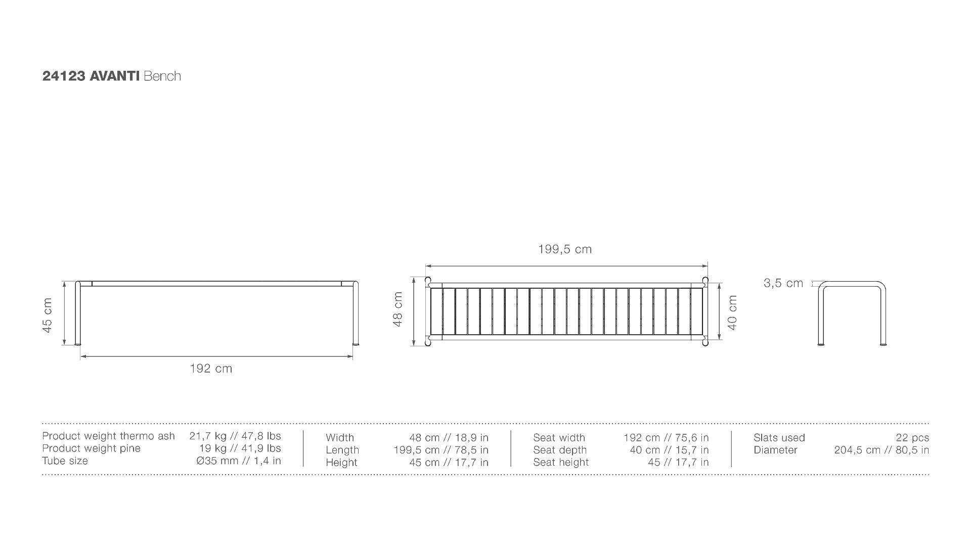 Afm: ± 199,5x48x45cm (LxBxH)