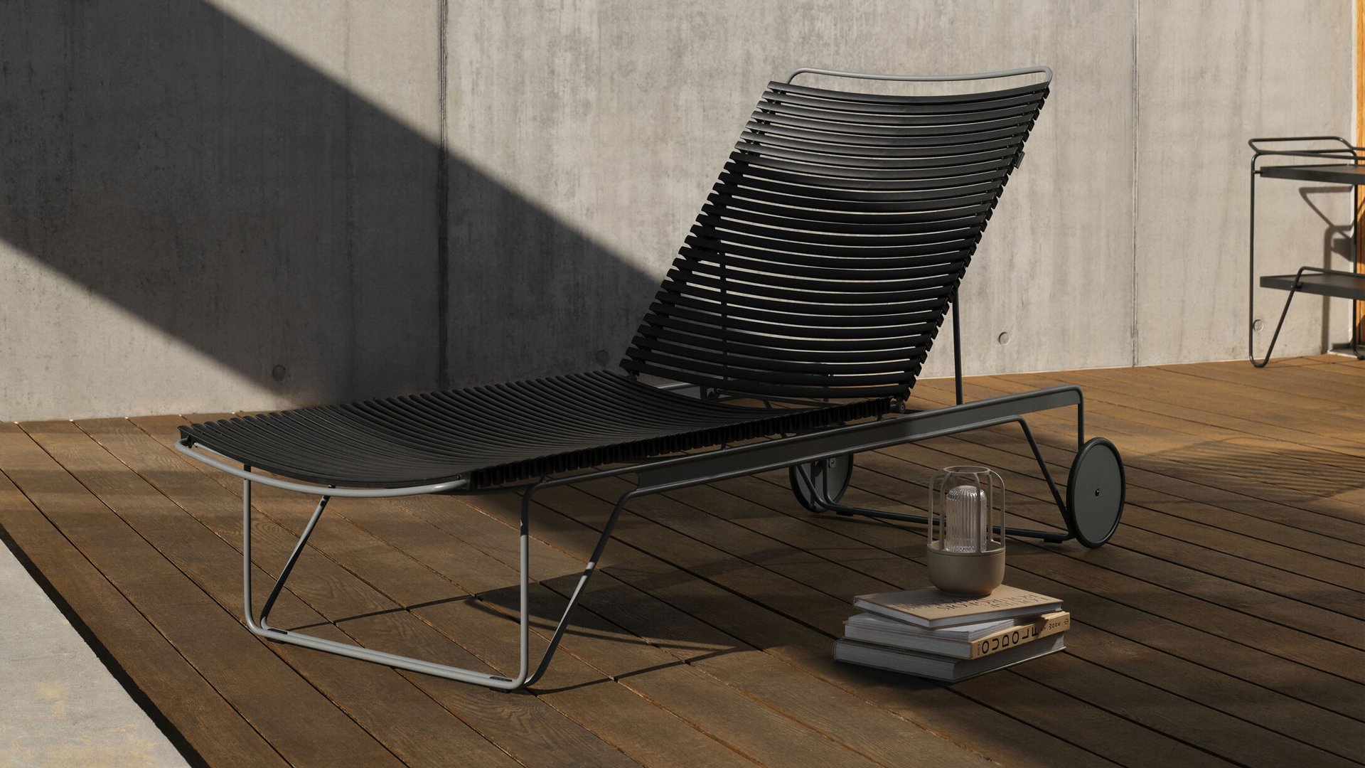 De verstelbare chaise longue CLICK staat voor individueel comfort en duidelijk Scandinavisch design. Dankzij de verstelbare rugleuning kan de ligpositie moeiteloos worden aangepast - van rechtop zitten met een boek tot achterover leunen en ontspannen in de zon. De brede latten bieden een evenwichtige combinatie van flexibiliteit en ondersteuning en zorgen voor een hoog comfortniveau zonder dat er extra kussens nodig zijn. Voor nog meer comfort kan de chaise longue optioneel worden aangevuld met een bijpassend HOUE loungekussen. Strakke lijnen, duurzame materialen en een functioneel ontwerp maken het de ideale metgezel voor rustige momenten in de buitenlucht.