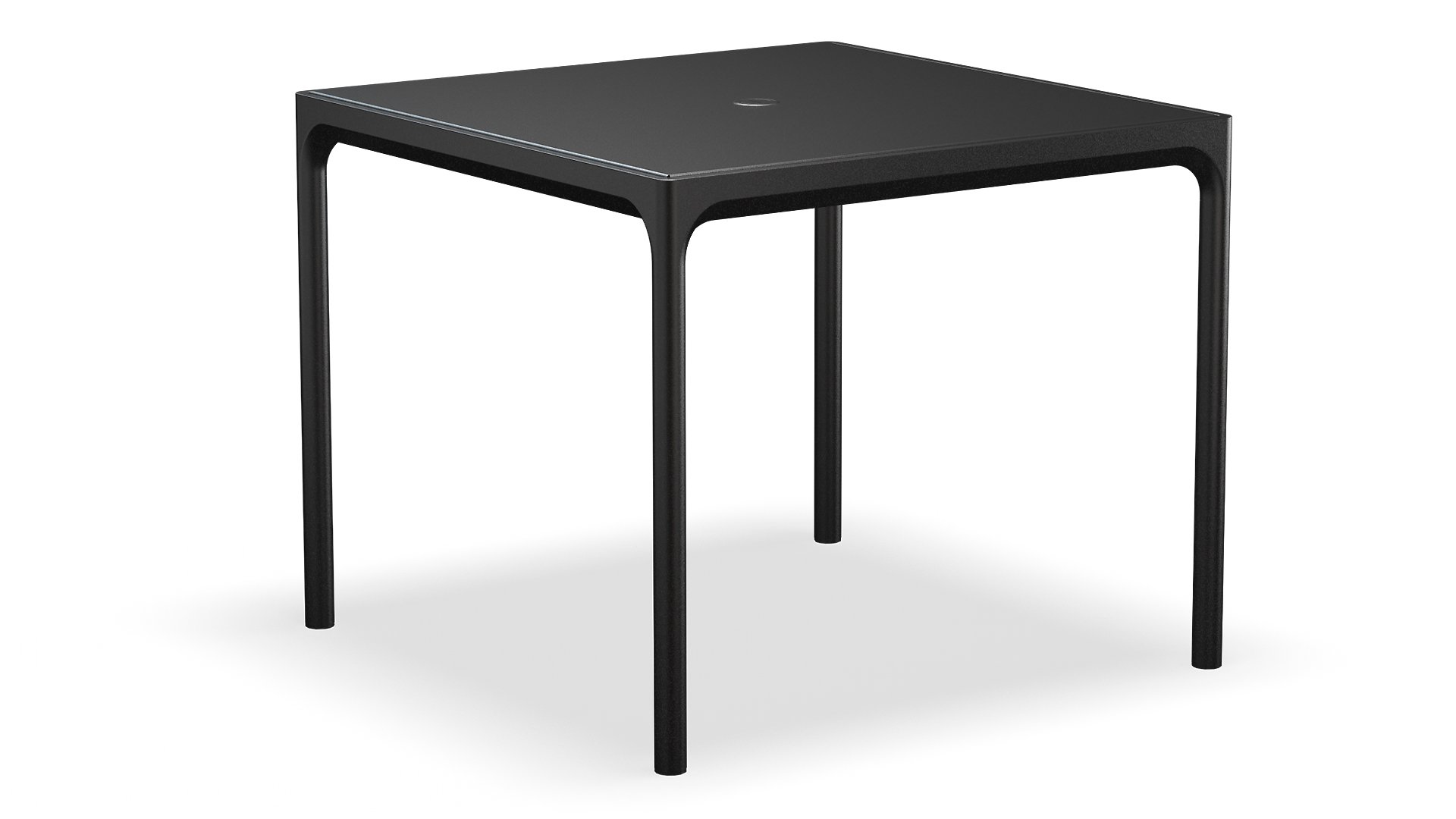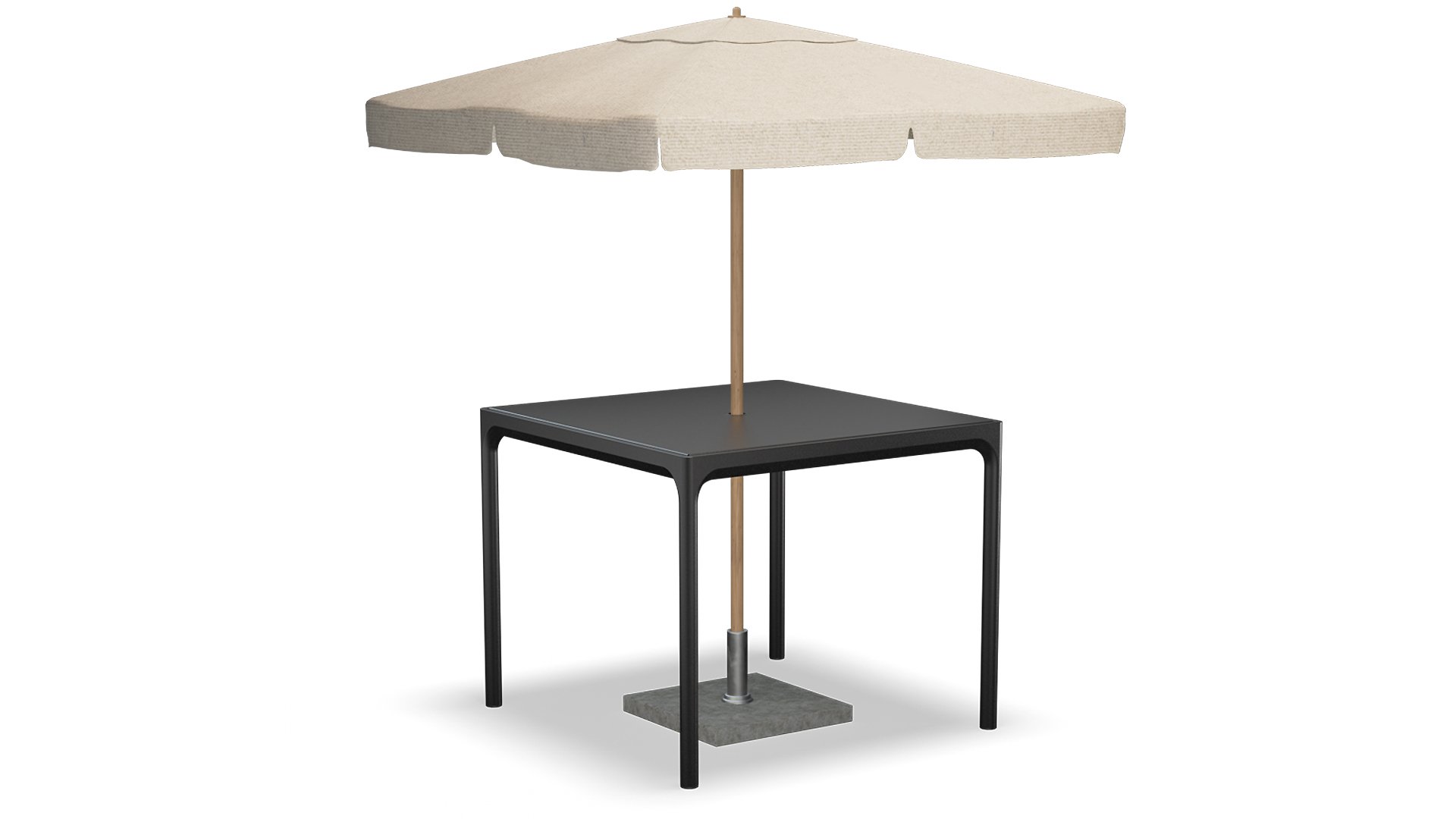De Four tafel van Houe is een robuust model dat goed past binnen een industrieel interieur of een stoer interieur. De tafel is ontworpen om weer en wind te kunnen weerstaan. De Four tafel heeft een sterk aluminium frame verkrijgbaar in gepoedercoat Black, Olive Green of Muted White. De 90x90cm tafel is voorbereid met een gat voor een parasol.