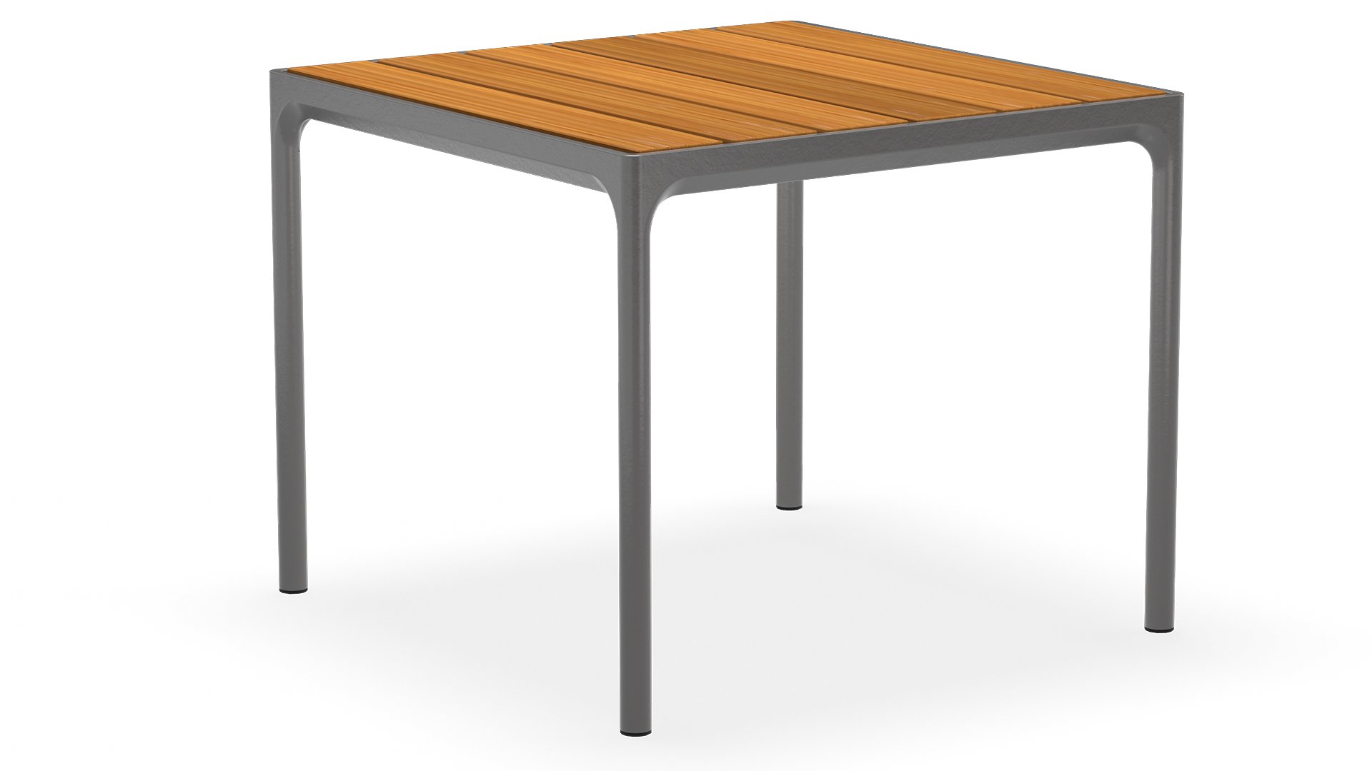 De Four tafel van Houe is een robuust model dat goed past binnen een industrieel interieur of een stoer interieur. De tafel is ontworpen om weer en wind te kunnen weerstaan. De Four tafel heeft een sterk aluminium frame verkrijgbaar in gepoedercoat grijs of zwart. Het bamboe tafelblad heeft een structuur die erg geschikt is voor het buitengebruik. De tafel komt in de afmetingen met een lengte maat van 90, 160, 210 en 270cm en hebben allemaal een breedte maat van 90cm en een hoogte van 74cm(bartafel 111cm hoog).  Bamboo is een duurzamer alternatief voor teak. Wel adviseren we om de bamboe 2-3 keer per jaar in te smeren met olie, de tafel zal dan langer zijn warme kleuren behouden.