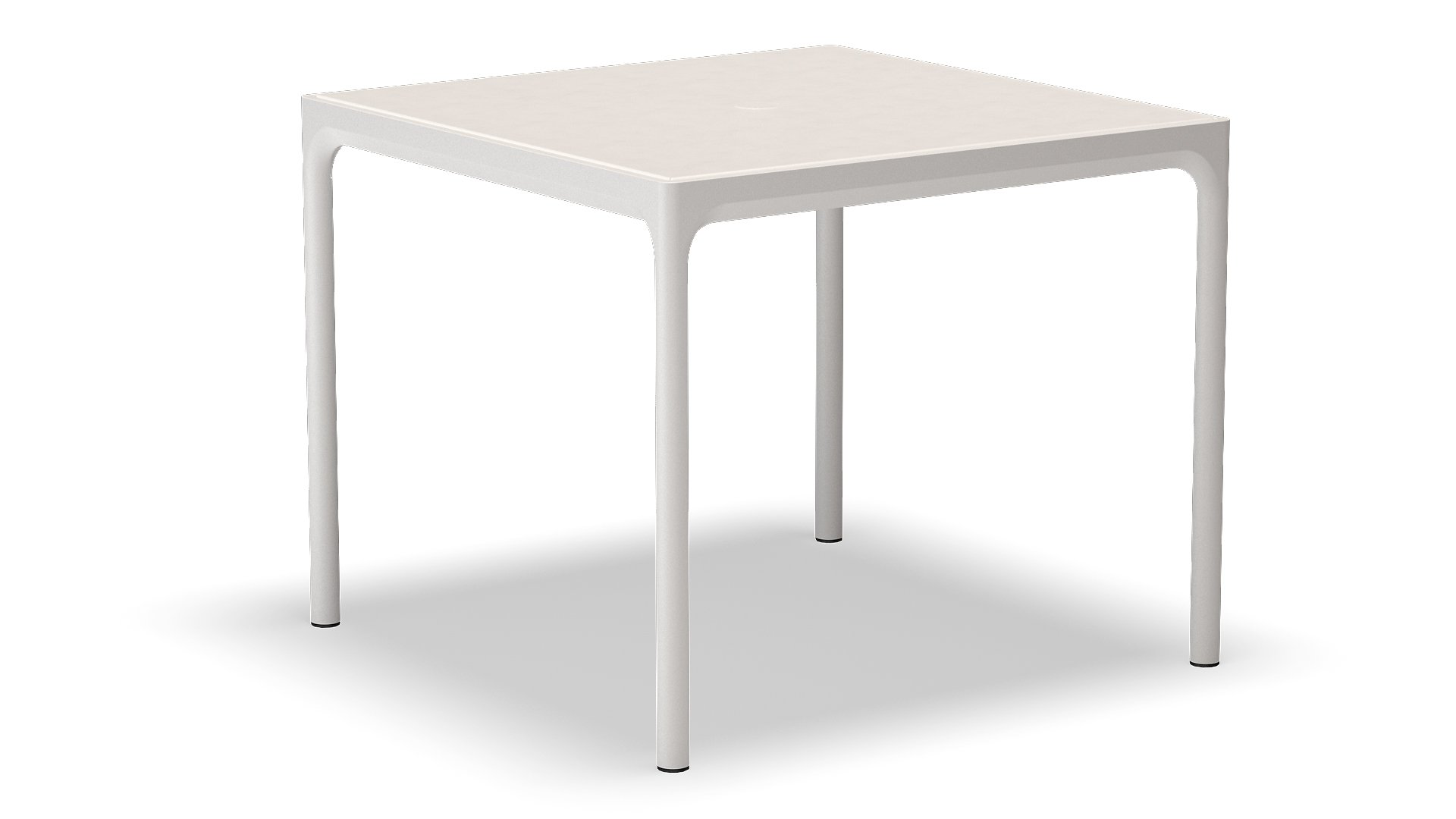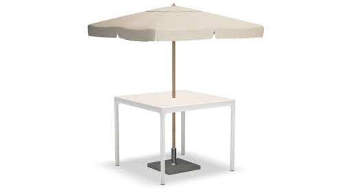 De Four tafel van Houe is een robuust model dat goed past binnen een industrieel interieur of een stoer interieur. De tafel is ontworpen om weer en wind te kunnen weerstaan. De Four tafel heeft een sterk aluminium frame verkrijgbaar in gepoedercoat Black, Olive Green of Muted White. De 90x90cm tafel is voorbereid met een gat voor een parasol.