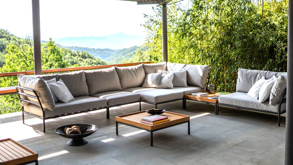 De Alpine groene en de Ash licht grijs/ecru kleurige en de Charcoal kleur kussens zijn gemaakt met Sunbrella Heritage-stof die 50% gerecycled acryl bevat. Kleurrijke vezeleinden van het proces van hergebruik van het primaire materiaal kunnen in het weefsel verschijnen en de stofkleur doen variëren van de ene batch tot de andere. Hierdoor ontstaat een unieke stof met een natuurlijke uitstraling en vintage charme. De stof is Oeko-tex gecertificeerd, waterafstotend, vlekbestendig en onderhoudsvriendelijk. Voor elk Houe Level onderdeel zijn keurig op maat passende hoezen leverbaar!