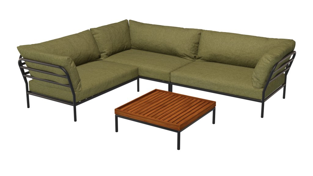 De Alpine groene en de Ash licht grijs/ecru kleurige en de Charcoal kleur kussens zijn gemaakt met Sunbrella Heritage-stof die 50% gerecycled acryl bevat. Kleurrijke vezeleinden van het proces van hergebruik van het primaire materiaal kunnen in het weefsel verschijnen en de stofkleur doen variëren van de ene batch tot de andere. Hierdoor ontstaat een unieke stof met een natuurlijke uitstraling en vintage charme. De stof is Oeko-tex gecertificeerd, waterafstotend, vlekbestendig en onderhoudsvriendelijk. Voor elk Houe Level onderdeel zijn keurig op maat passende hoezen leverbaar!