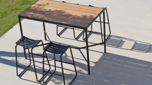 De lamellen worden voor 97% van huishoudelijk plastic afval gemaakt en zijn bewerkt met een Uv-bestendige coating. De barstoelen hebben minimaal onderhoud nodig. HOUE raadt aan het aluminium te reinigen met water en milde zeep.