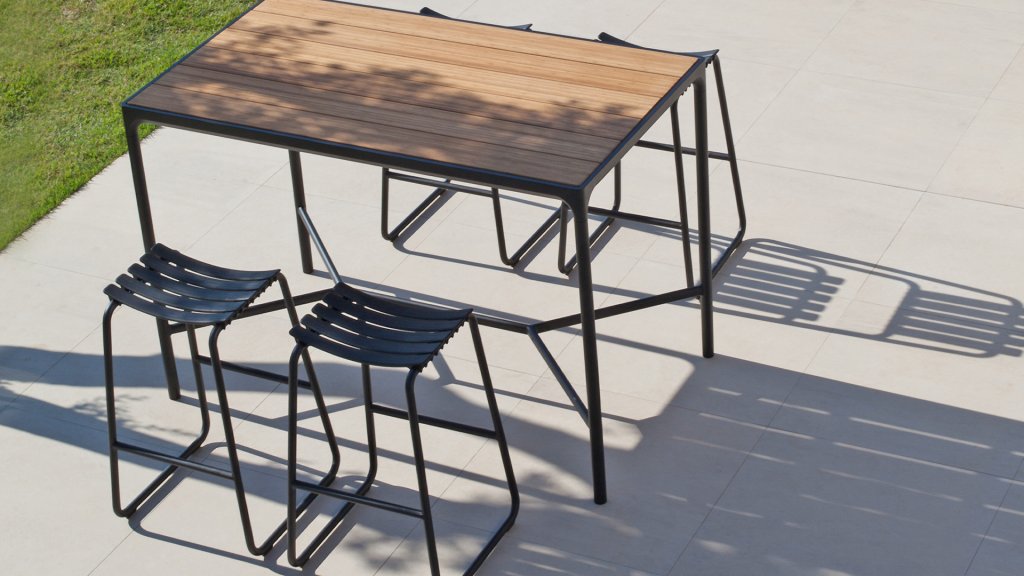 De Four bartafel van Houe is een robuust model dat goed past binnen een industrieel interieur of een stoer interieur. De tafel is ontworpen om weer en wind te kunnen weerstaan. De Four tafel heeft een sterk aluminium frame verkrijgbaar in gepoedercoat zwart. Het aluminium tafelblad heeft een structuur die erg geschikt is voor het buitengebruik. De tafel komt in de afmetingen met een lengte maat van 90, 160, 210 en 270cm en hebben allemaal een breedte maat van 90cm en een hoogte van 74cm (bartafel 111cm hoog).