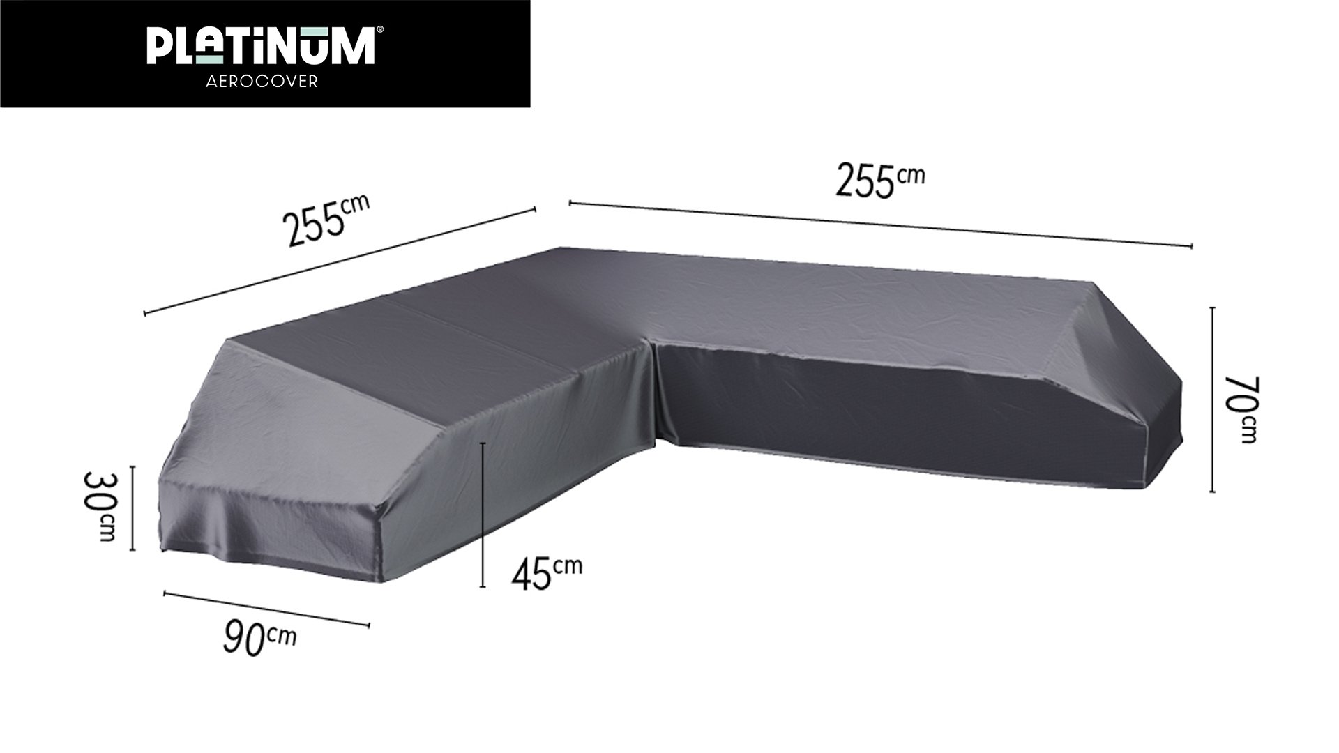 1 x Platinum AeroCover beschermhoes Loungeset 255x255x90xH30/45/70 L-vorm met 90 graden hoek