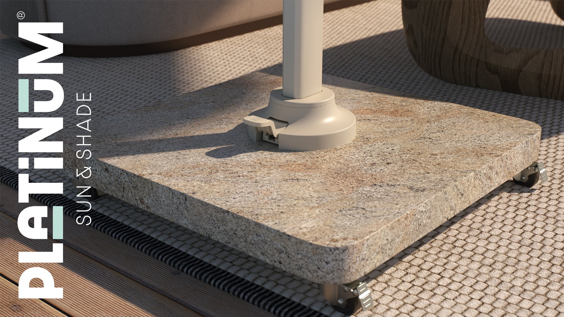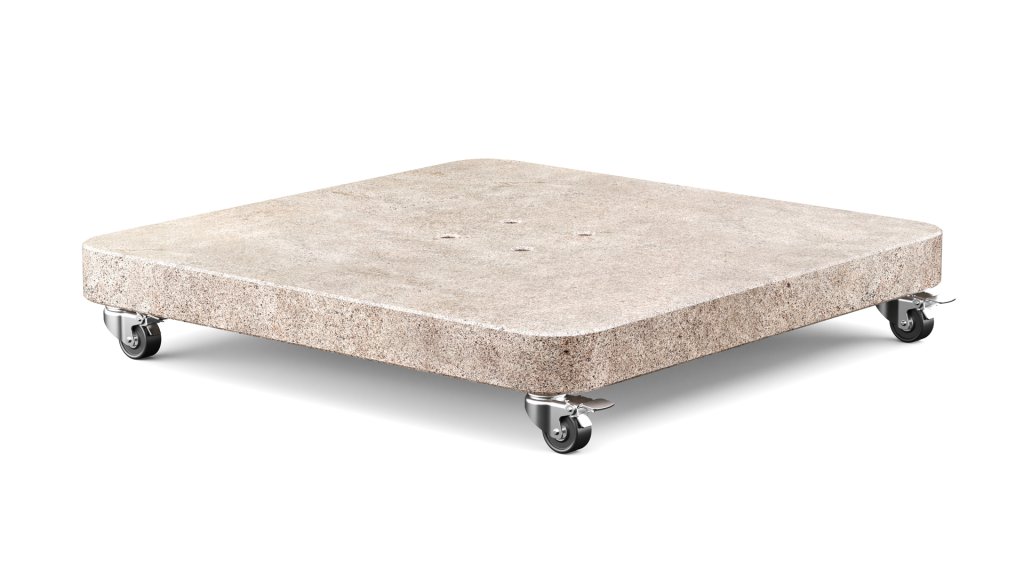 Deze verrijdbare parasolvoet van natuursteen voor vrijhangende parasols is gemaakt van speciaal geselecteerd graniet en is gepolijst. De hoge kwaliteit van het graniet en onze nabewerking zorgen voor een langdurig behoud van de kleur.