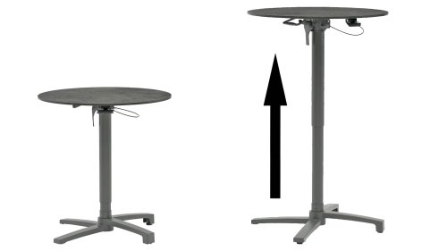 De SenS-Line Lima tafel is een veelzijdige en moderne keuze voor zowel binnen- als buitengebruik. Met een tafelblad van Ø70 cm biedt deze tafel voldoende ruimte voor twee of drie personen, ideaal voor kleinere tuinruimtes of serres. Wat deze tafel echt bijzonder maakt, is de instelbare hoogte. Je kunt de hoogte eenvoudig aanpassen van 72 cm naar 107 cm, zodat je de tafel kunt gebruiken voor verschillende doeleinden.