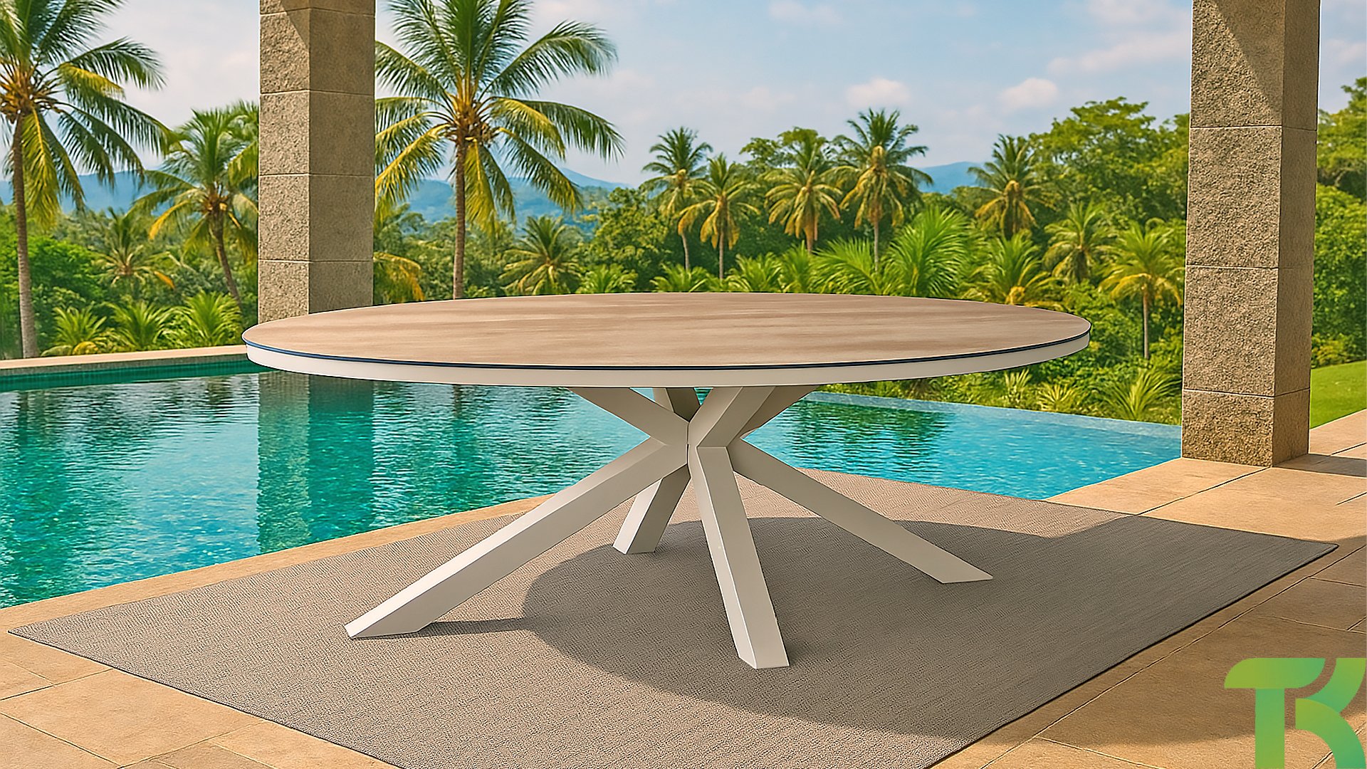 De Luccio 220cm tafel. Vervaardigd van gepoedercoated aluminium in een Taupe kleur en een 8mm keramiek op glas tafelblad. De tafel die is zo goed als onderhoudsvrij. Deze prachtige tafel combineert functionaliteit met een stijlvol design, waardoor het de ideale keuze is voor iedereen die van buitenleven houdt.