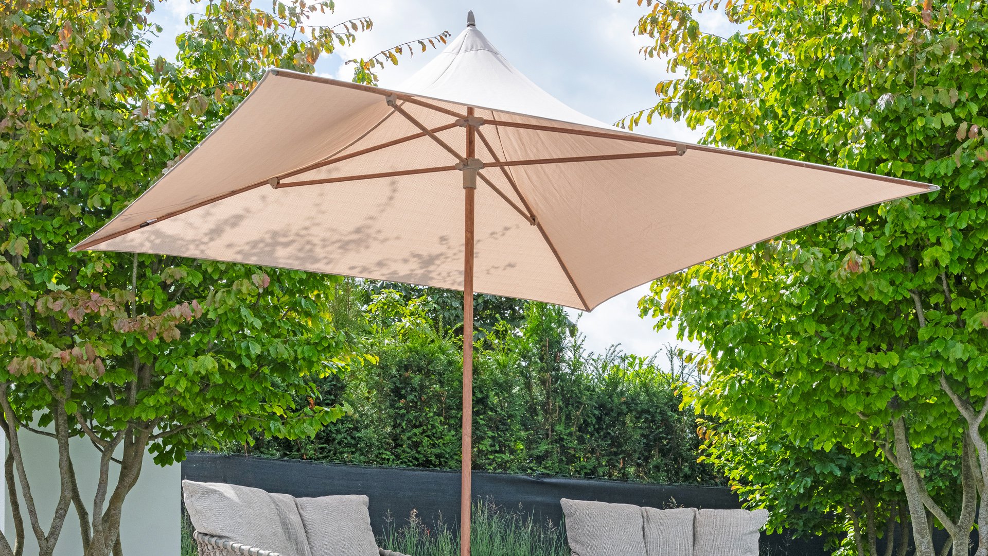 Met een Topline parasol bent u verzekerd van kwaliteit. Topline parasols zijn voorzien van een 220 grams parasoldoek die zijn gemaakt van 100% polyester en hebben een waterafstotende PA-coating.  Ook biedt het doek UV-bescherming met een UPF-waarde van 50+ en een garantie van 2.000 zonuren. Onbezorgd genieten dus! Deze parasol is knikbaar, om ook het laagstaande zonnetje te blokkeren.