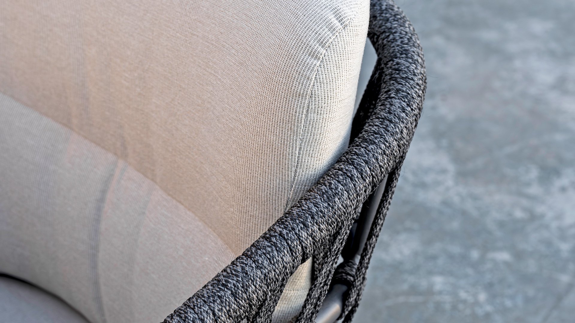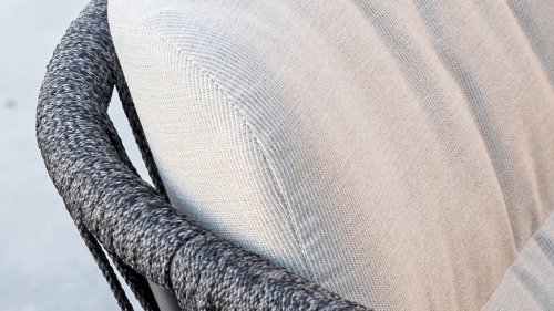 De sterke stof is bestand tegen een regenbui, uitritsbaar en wasbaar. Handig, maar let wel: de kussens zijn waterafstotend. Laat je ze lang in de regen liggen, dan kunnen ze alsnog nat worden aan de binnenkant.