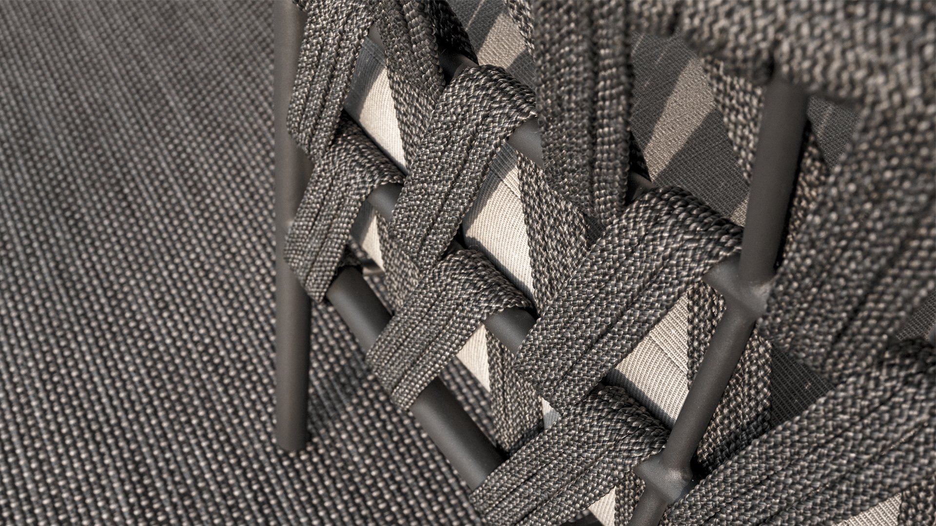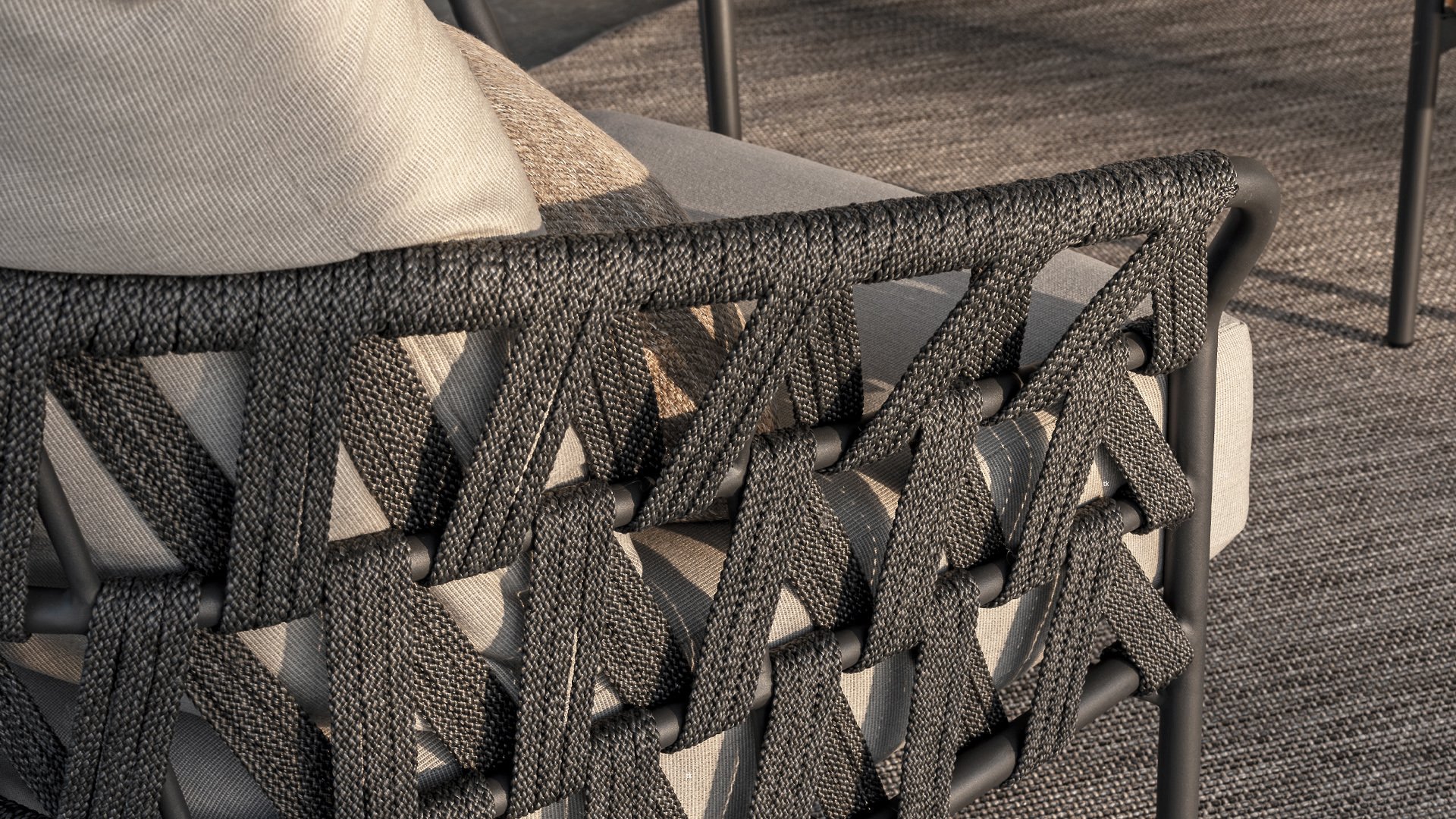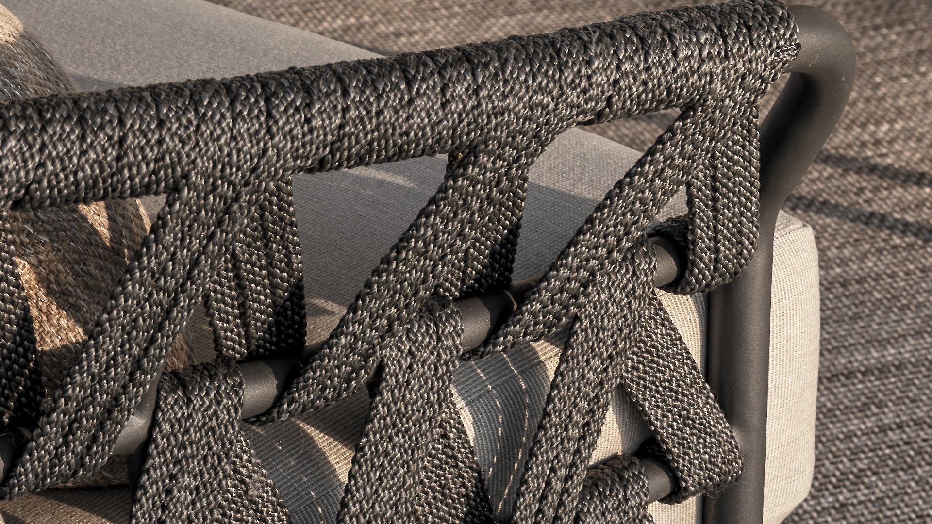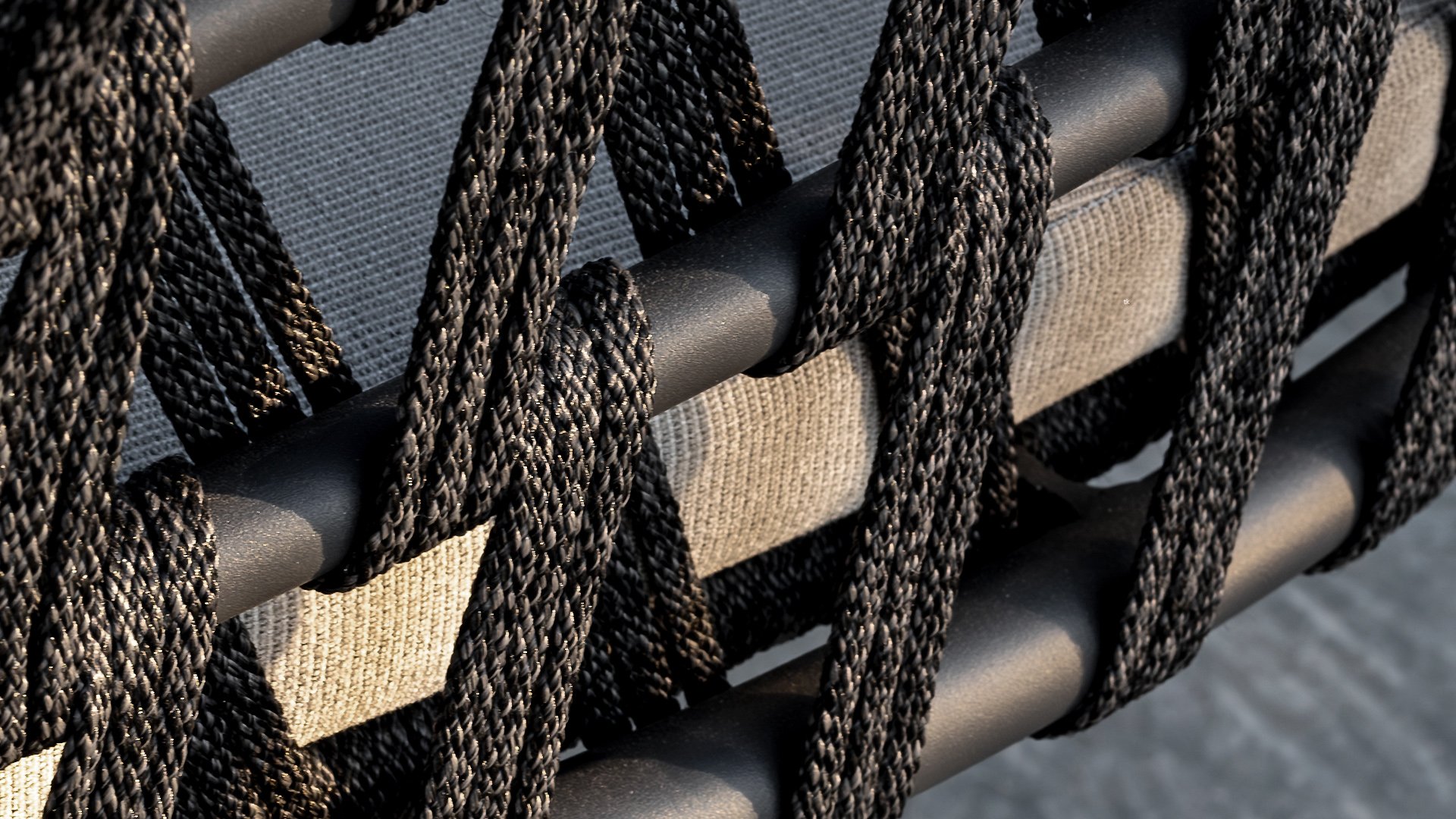 Dit prachtige materiaal is perfect voor buitengebruik, want Taste Rope is niet zo maar een gewone veter waar u uw schoenen mee strikt. Taste gebruikt zeer hoge kwaliteits Rope gemaakt van 100% SDP (Slution Dyed Polypropylene). Dit materiaal is extreem sterk en heeft een zeer klein rekbaarheids percentage. Polyproylene is op olie basis waardoor vuil en verontreiniging nauwelijks in kan dringen, net als onze kussens. Taste biedt exclusieve designs, waarbij hand geweven Rope patronen en technieken worden gebruikt.