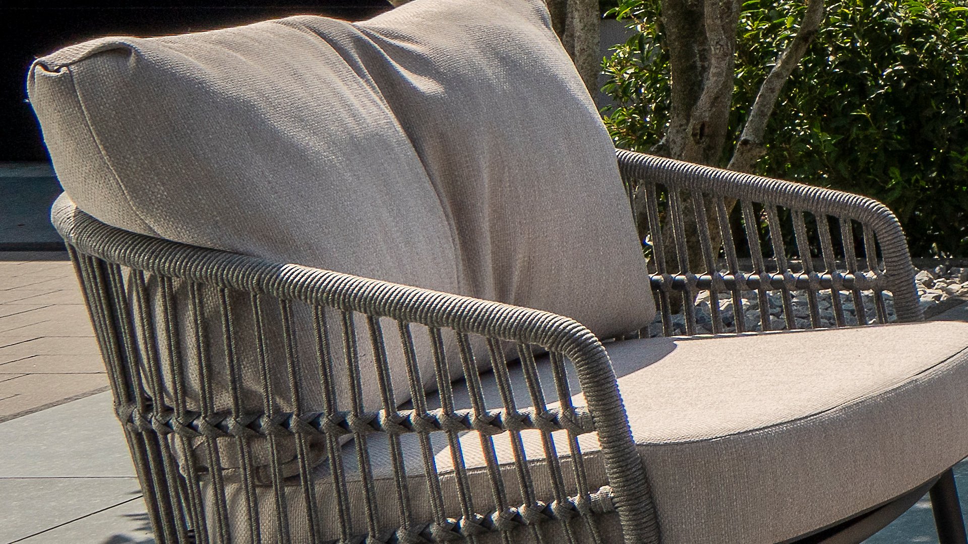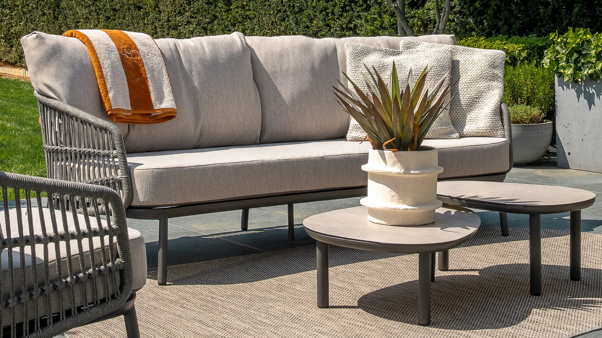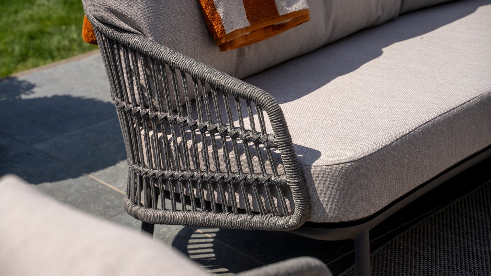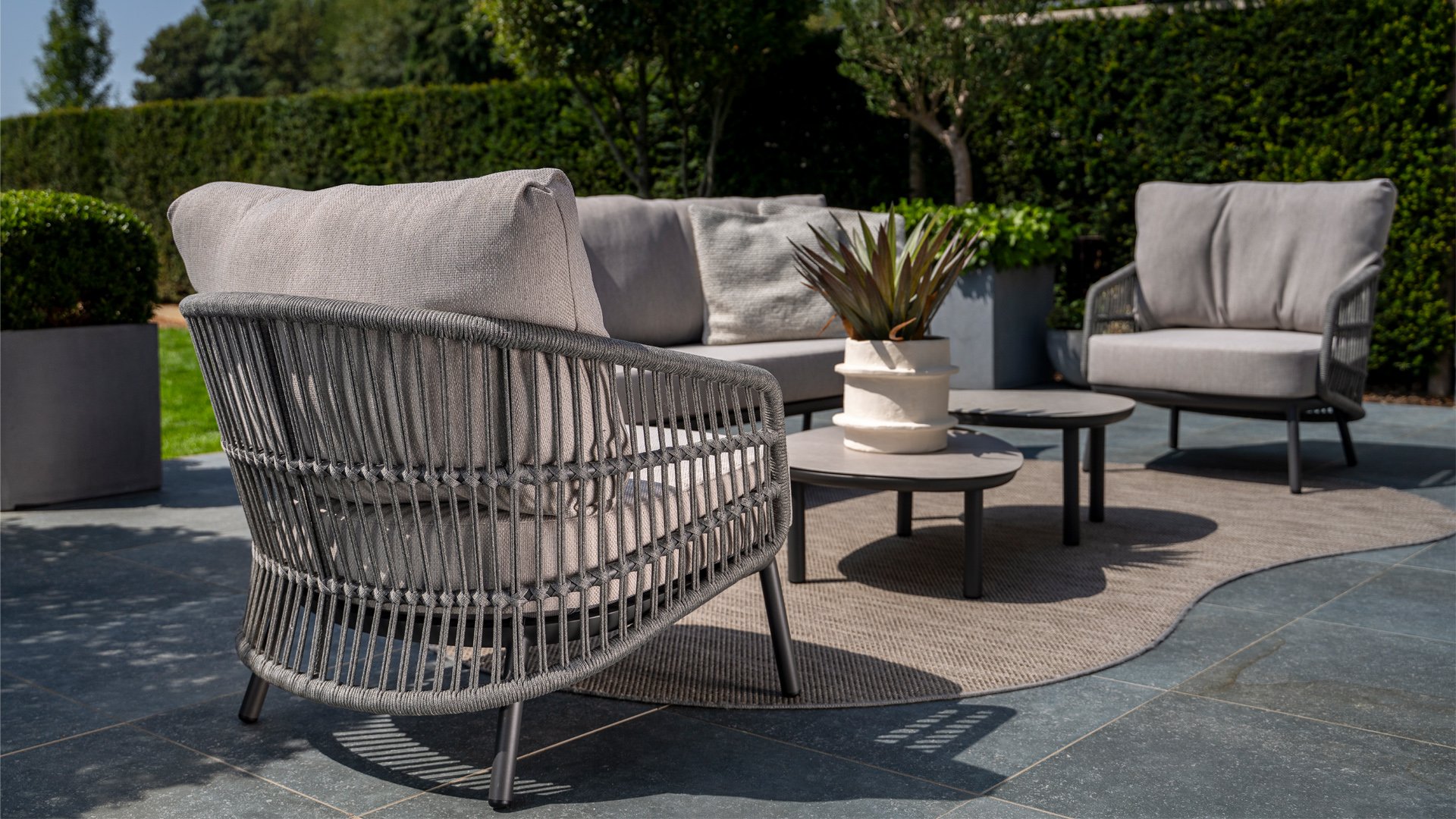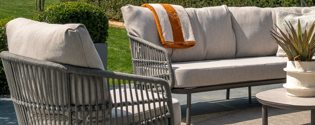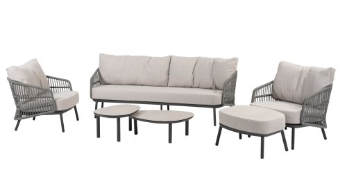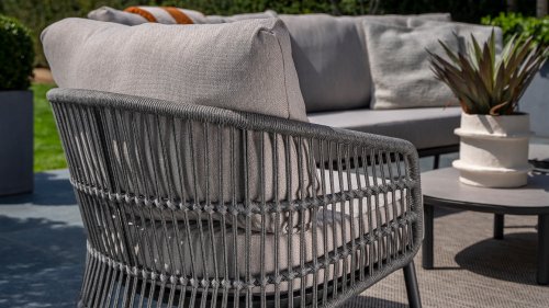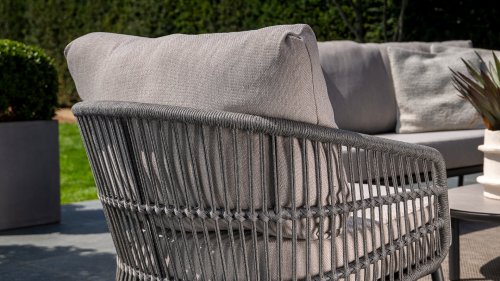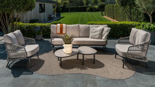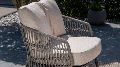 Topkwaliteit materialen: een sterke rope-en aluminium frame, gecombineerd met duurzame all-weather kussens die elk seizoen moeiteloos doorstaan.