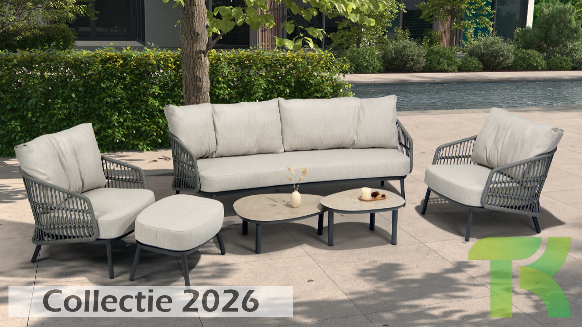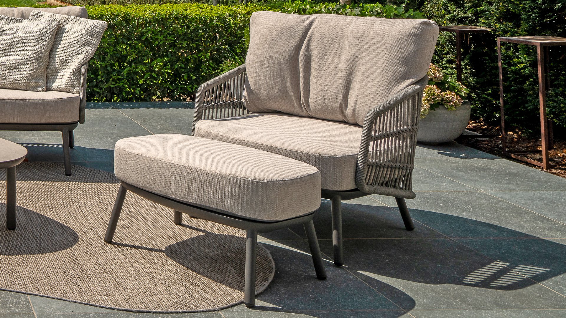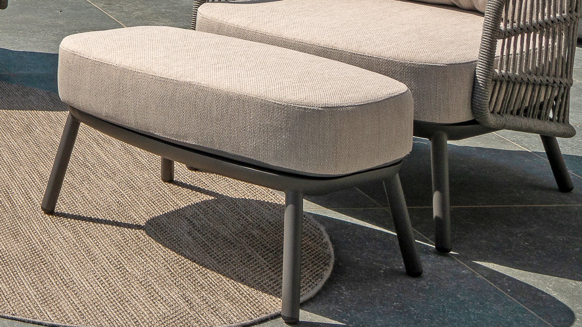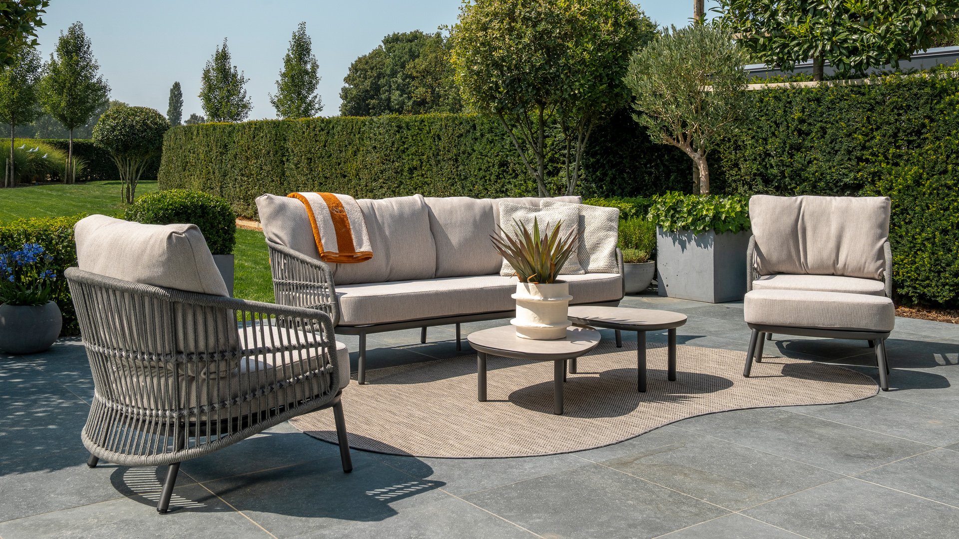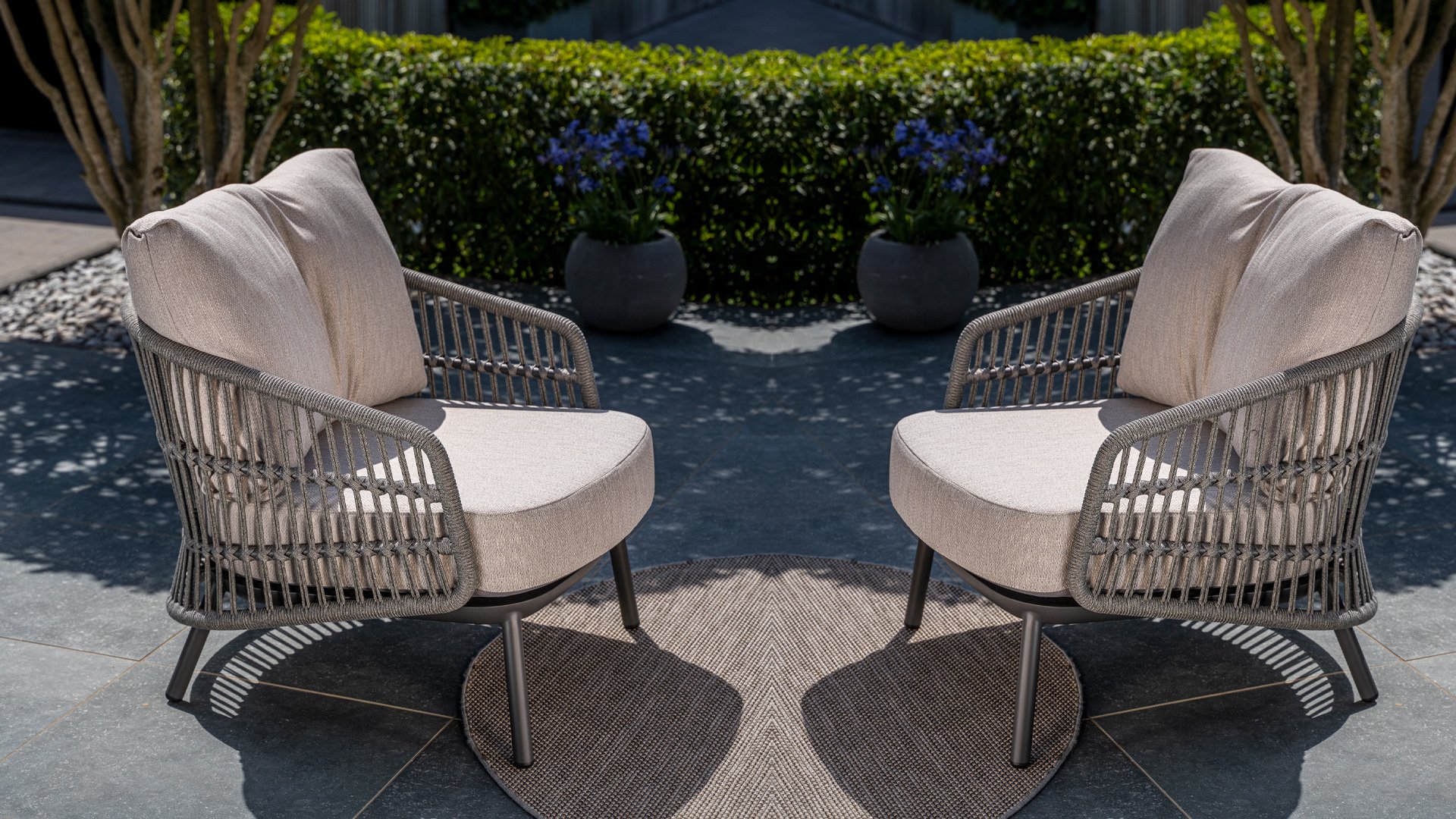 Topkwaliteit materialen: een sterke rope-en aluminium frame, gecombineerd met duurzame all-weather kussens die elk seizoen moeiteloos doorstaan.