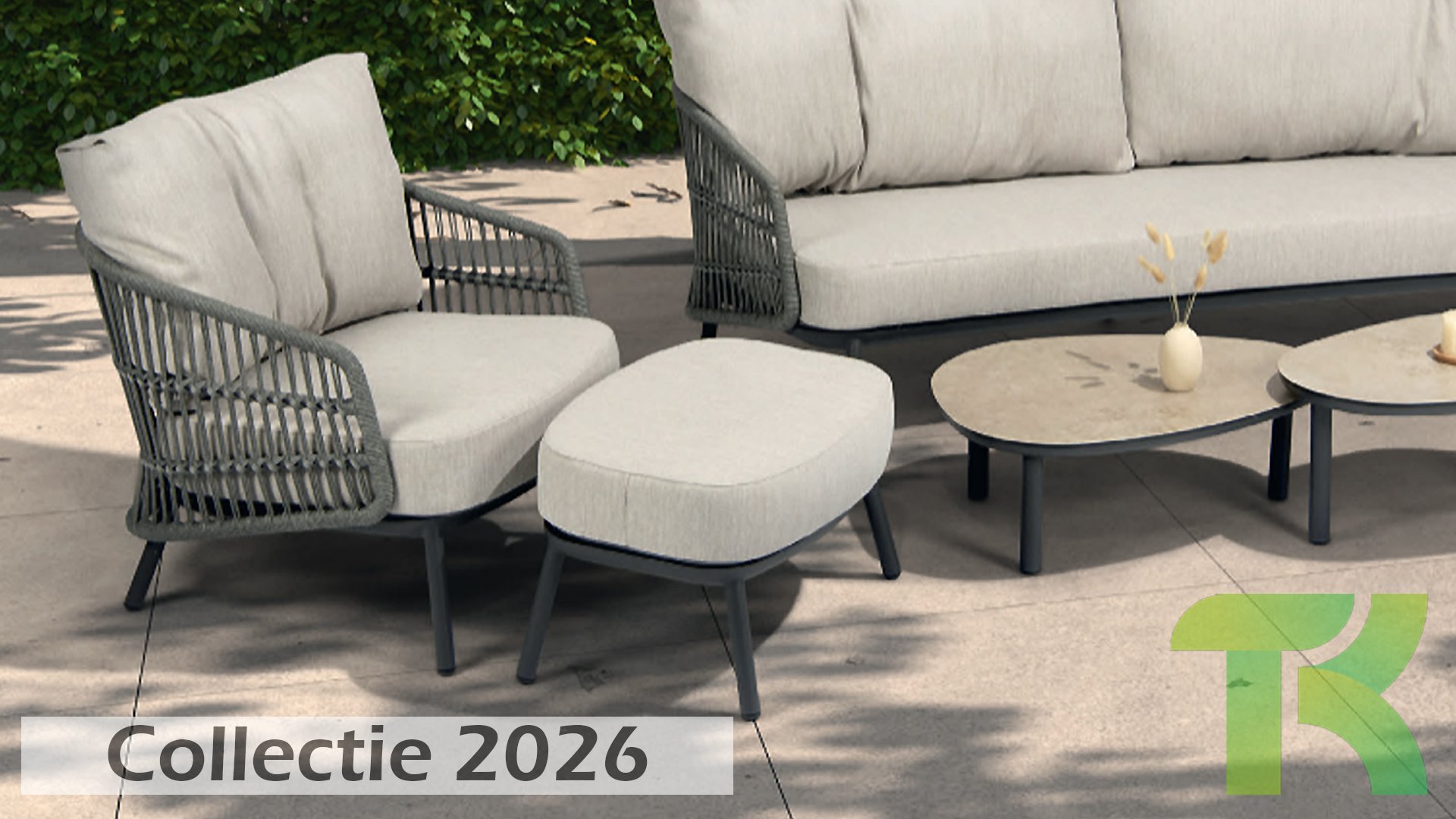 Topkwaliteit materialen: een sterke rope-en aluminium frame, gecombineerd met duurzame all-weather kussens die elk seizoen moeiteloos doorstaan.