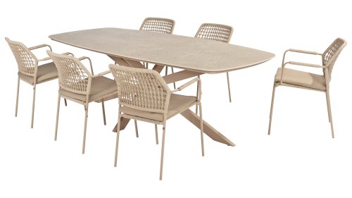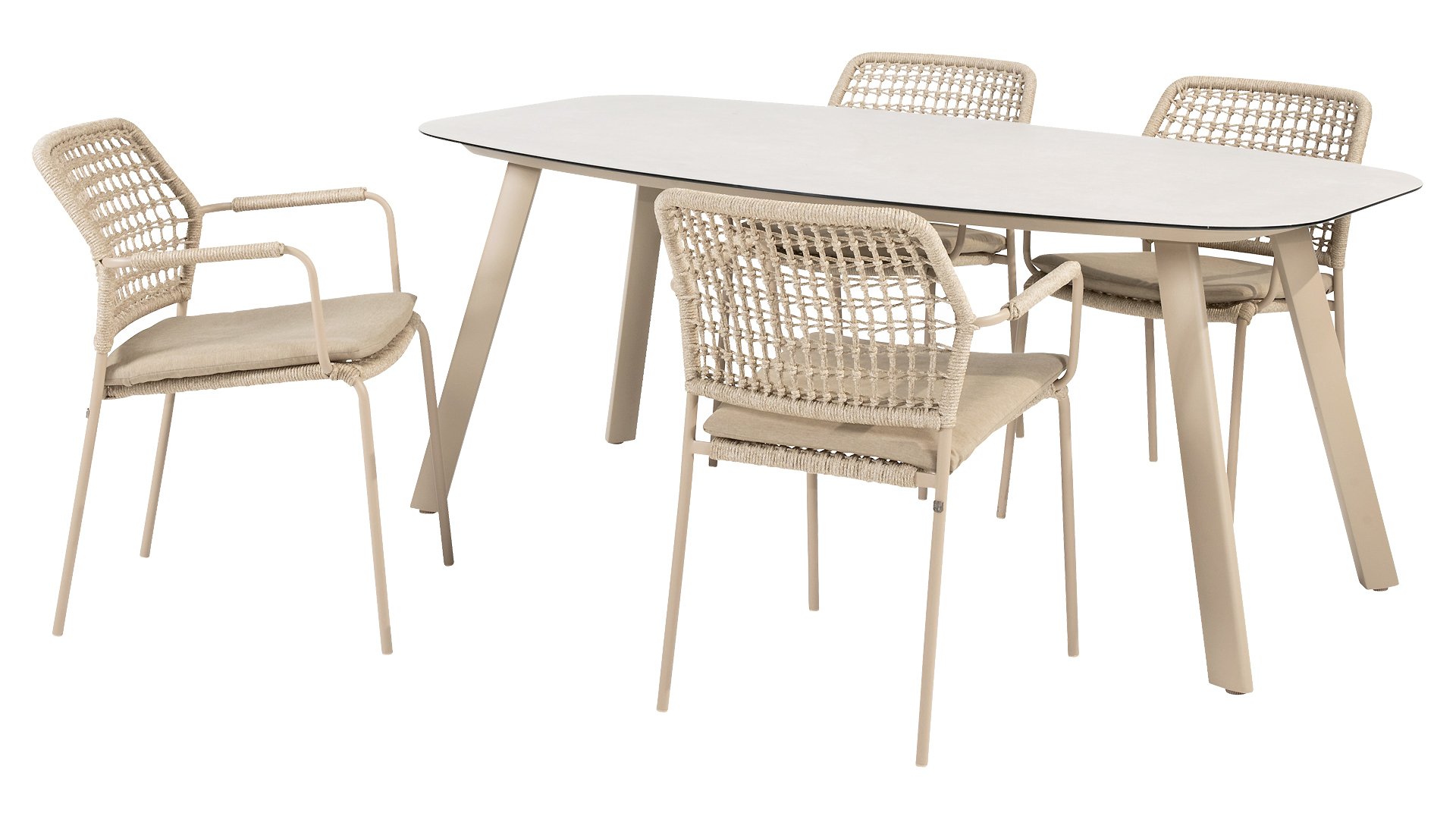 De Barista dining stoel wordt geleverd met een zitkussen, waardoor je lekker comfortable zit. Daarnaast is het kussen ook voorzien van een rits en dus uitristbaar en wasbaar. Al met al is dit een fijne stoel, die van alle markten thuis is en in vele tuinen en terrassen goed tot zijn recht komt. De Barista Taste stapel dining fauteuil is vervaardigd uit een roestvast stalen frame. In dit frame is prachtig rond rope gevlochten wat zorgt voor een modern design. Het materiaal van de Barista tuinstoel is erg sterk, onderhoudsvriendelijk, en zal niet roesten. Let op! Dit rope is speciaal ontworpen voor buitengebruik. Het rope heeft een binnenkern van polypropyleen en een buitenkern van Olefin. Deze combinatie zorgt ervoor dat het rope water en vuil afstotend en schimmelwerend is. Het rope heeft een hoge UV bescherming en de stof wordt niet warm in de zon.