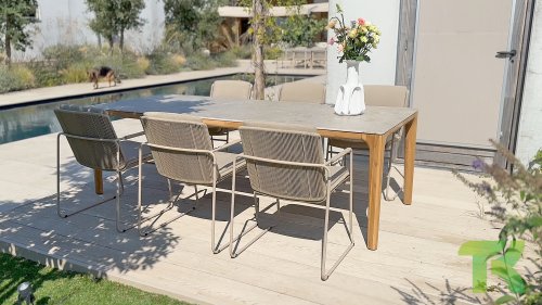 De 4SO Barista stapelbare tuistoel van Taste by 4 Seasons Outdoor is een modern, simpel gehouden dining stoel, die erg mooi staat in verschillende tuinen. Of je nu een moderne, strakke tuin of een natuurlijke tuin hebt, de Barista stoel past vrijwel altijd. Ga zitten en geniet van je koffie. Een prachtig patroon van rope, verrassend comfort en de eigenschap om te passen bij veel verschillende tafels. Beschikbaar in allerlei smaken, schenken we je Barista. Geniet ervan! Deze stoel is er in 3 kleuren: Antraciet, Terre en Latte. Het rope materiaal is weerbestendig en in een blok-patroon geknoopt waarbij het op subtiele wijze ook weer terug komt in de armleuningen.