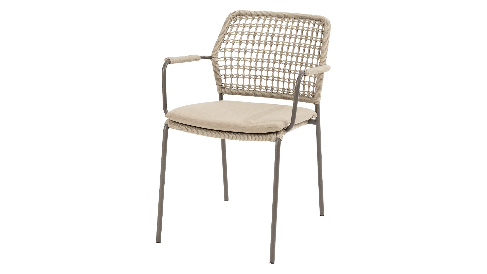 De 4SO Barista stapelbare tuistoel van Taste by 4Seasons Outdoor is een modern, simpel gehouden dining stoel, die erg mooi staat in verschillende tuinen. Of je nu een moderne, strakke tuin of een natuurlijke tuin hebt, de Barista stoel past vrijwel altijd. Deze stoel is er in 3 kleuren: Antraciet, Terre en Latte. Het rope materiaal is weerbestendig en in een blok-patroon geknoopt waarbij het op subtiele wijze ook weer terug komt in de armleuningen.