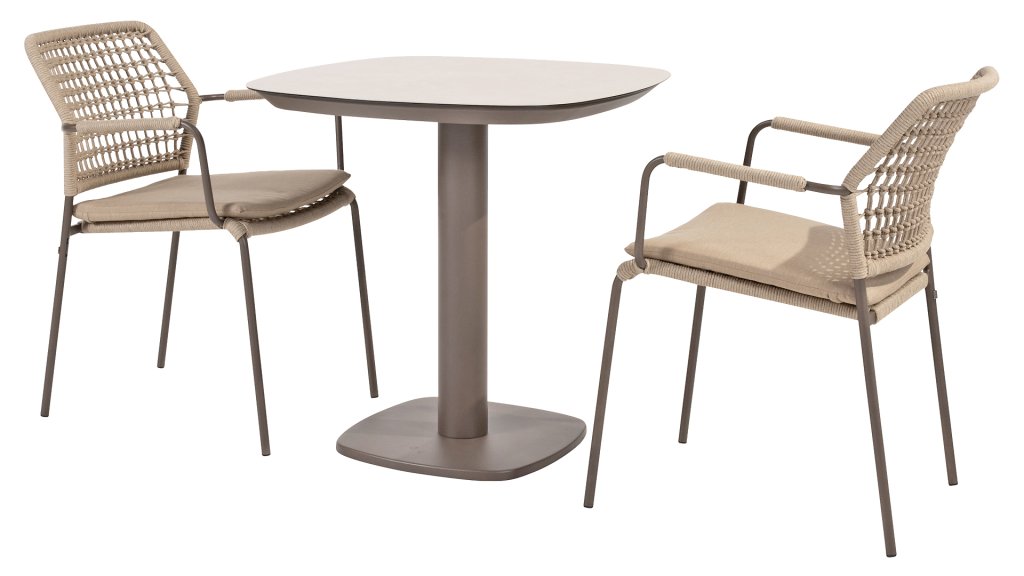 Deze tafel heeft een stijlvolle en moderne uitstraling met een afmeting van 75x75x75 cm, waardoor hij perfect is voor kleinere ruimtes of als bijzettafel. Het tafelblad van de Taste Manolo is gemaakt van keramiek op glas, wat niet alleen zorgt voor een luxe uitstraling, maar ook voor duurzaamheid en eenvoud in onderhoud. De Taste by 4 Seasons Outdoor Manolo 75cm is verkrijgbaar in drie trendy kleuren: Latte, een warme, neutrale tint die gemakkelijk te combineren is met verschillende stoelen. Antraciet, een donkerdere kleur die een strakke, moderne look toevoegt. En Terre, een warme donkere aardetint. Deze veelzijdige tafel is ideaal voor zowel binnen- als buitenshuis en biedt een perfecte plek voor een kop koffie of een gezellig diner. Ook verkijgbaar in grotere varianten, namelijk 180x95x75cm én 240x103x75cm in 3 kleuren.