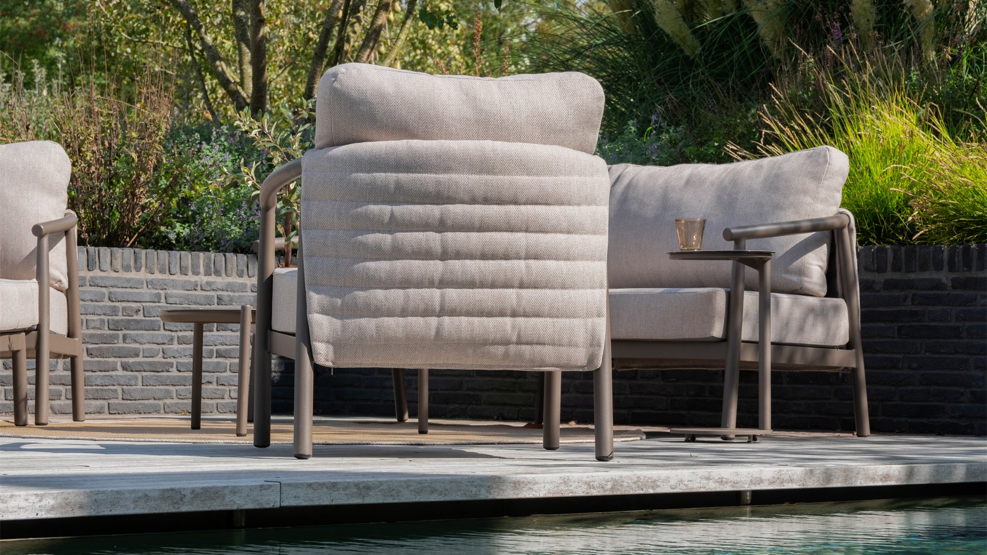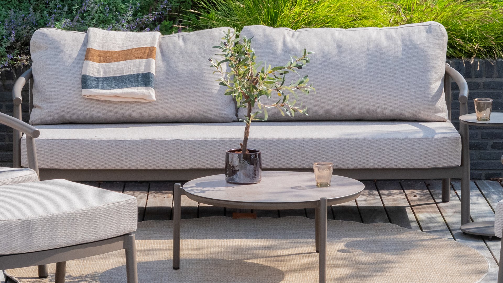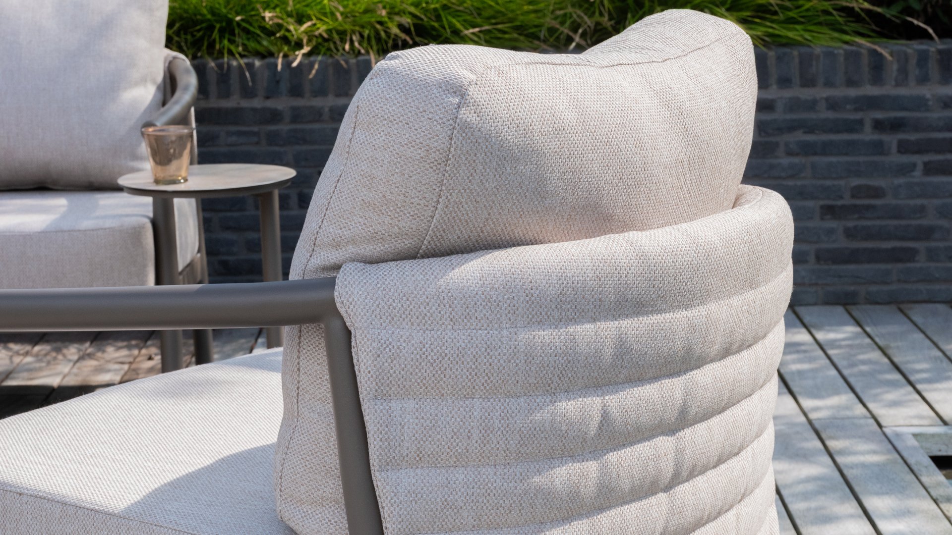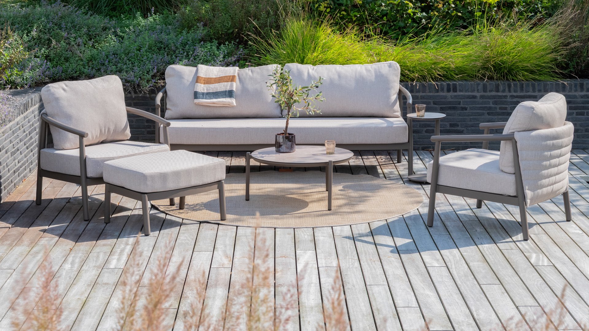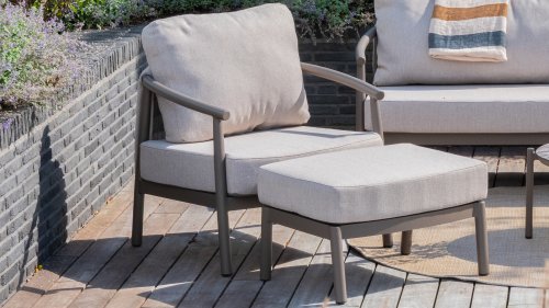 Met zijn royale kussens van weerbestendige olefin stof en een sterk frame van hoogwaardig aluminium biedt dit set het ultieme loungecomfort, het hele jaar door. Regen, zon of wind – dit all-weather loungeset blijft mooi en voelt altijd uitnodigend aan.