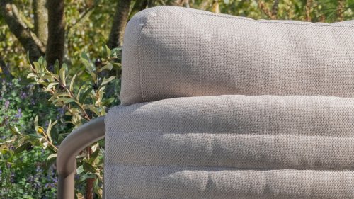 De sterke stof is bestand tegen een regenbui, uitritsbaar en wasbaar. Handig, maar let wel: de kussens zijn waterafstotend. Laat je ze lang in de regen liggen, dan kunnen ze alsnog nat worden aan de binnenkant.