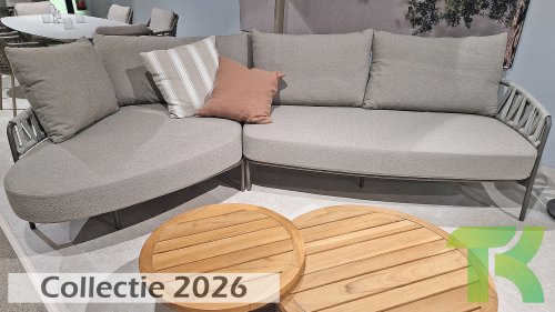 - Taste Calma Lounge Terre: met een moderne, aardse (terre) uitstraling en luxe Boucle Clay kussens in elegant grijs. Verkrijbaar in bank chaise lounge opstelling.