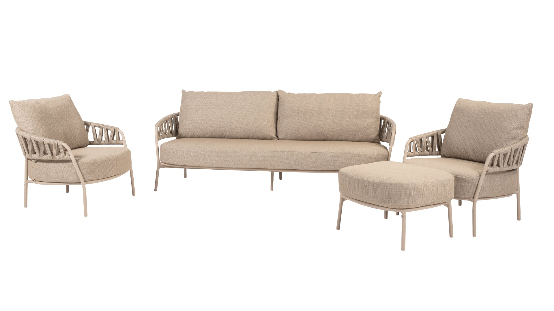 De Calma Lounge is meer dan een loungeset – het is een uitnodiging om te ontspannen, te genieten en het buitenleven in alle rust te omarmen. Ontdek zelf de perfecte mix van comfort en karakter. De 4SO Calma loungeset biedt uitstekend zitcomfort, ideaal voor lange zomerse avonden, ontspannen momenten met een boek of gezellig samenzijn met familie en vrienden. Naast de loungeset is de Calma serie ook beschikbaar in een matching Calma dining stoel, zodat je jouw complete buitenruimte in één stijl kunt inrichten. Met de Calma loungeset combineer je stijl, comfort en duurzaamheid. Taupe rope en latte frame vormen samen een rustige, natuurlijke kleurencombinatie die perfect aansluit bij de naam Calma. Creëer je eigen buitenparadijs en geniet van ieder moment in ultiem comfort.
