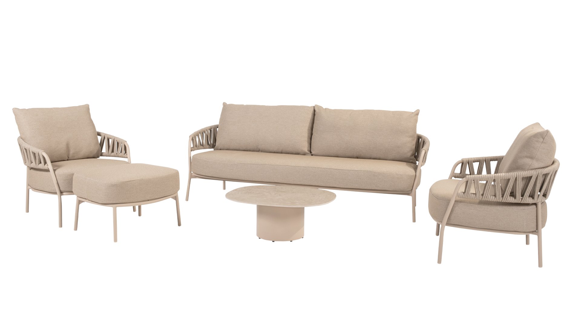 De Calma Lounge is meer dan een loungeset – het is een uitnodiging om te ontspannen, te genieten en het buitenleven in alle rust te omarmen. Ontdek zelf de perfecte mix van comfort en karakter. De 4SO Calma loungeset biedt uitstekend zitcomfort, ideaal voor lange zomerse avonden, ontspannen momenten met een boek of gezellig samenzijn met familie en vrienden. Naast de loungeset is de Calma serie ook beschikbaar in een matching Calma dining stoel, zodat je jouw complete buitenruimte in één stijl kunt inrichten. Met de Calma loungeset combineer je stijl, comfort en duurzaamheid. Taupe rope en latte frame vormen samen een rustige, natuurlijke kleurencombinatie die perfect aansluit bij de naam Calma. Creëer je eigen buitenparadijs en geniet van ieder moment in ultiem comfort.