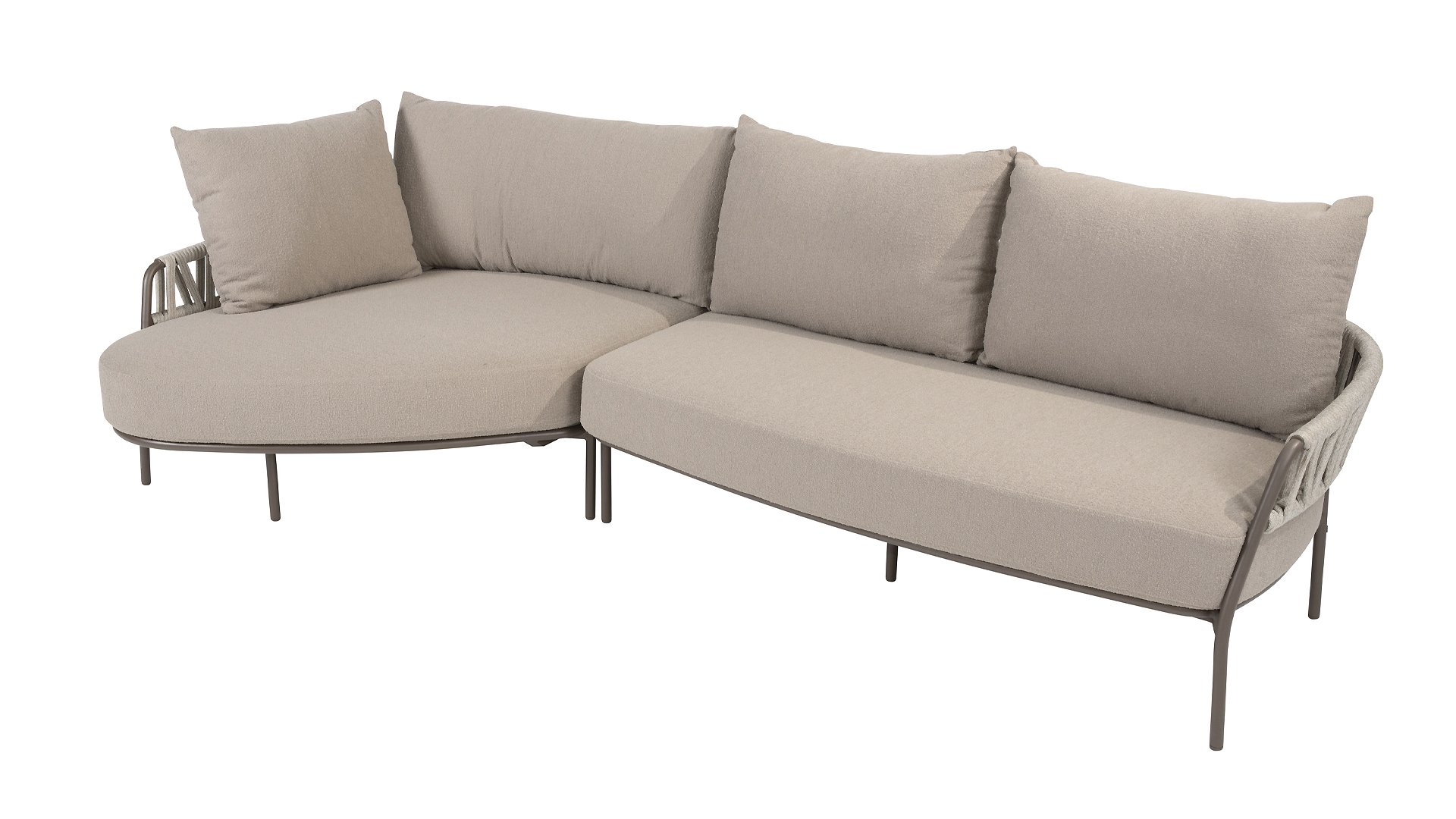 - Taste Calma Lounge Terre: met een moderne, aardse (terre) uitstraling en luxe Boucle Clay kussens in elegant grijs. Verkrijbaar in bank chaise lounge opstelling.