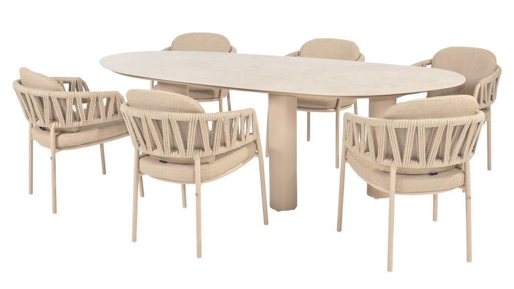 1 x Taste Estate tafel mango vorm keramiek-alu latte 240x105xH75cm