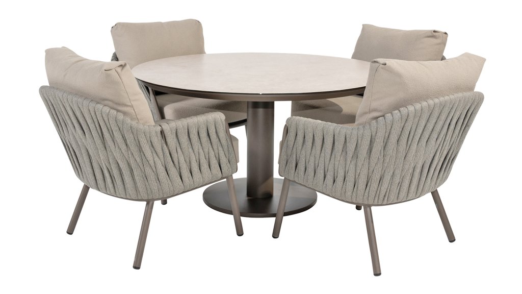 Maak kennis met de Taste Sarah, de ronde tafel die elegantie en functionaliteit moeiteloos combineert. Deze prachtige tafel is een echte blikvanger in iedere tuin of eetruimte. Dankzij het ronde design geniet je van een gezellige, uitnodigende sfeer waarbij iedereen aan tafel met elkaar in contact blijft. Het blad van hoogwaardig printed keramiek zorgt niet alleen voor een luxe uitstraling, maar is ook buitengewoon sterk, krasvast en onderhoudsvriendelijk. De centrale poot biedt maximale beenruimte en geeft de tafel een moderne, luchtige look. De Taste by 4 Seasons Outdoor Sarah is in twee varianten en twee kleuren verkrijgbaar. De tafel is verkrijgbaar in twee maten: 120x75cm (dining) en 130x69cm (low dining), in de kleuren Latte en Terre.