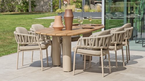 Breng luxe en functionaliteit samen in je tuin of op je terras met de Estate tafelserie van Taste by 4 Seasons Outdoor. Deze elegante tafels zijn ontworpen voor wie houdt van strak design, hoogwaardige materialen en ultiem gebruiksgemak. De Taste Estate tafel springt direct in het oog door zijn subtiel afgeronde, mango shaped blad – een verfijnde twist op de klassieke rechthoek, die zorgt voor een natuurlijke, speelse en uitnodigende uitstraling.