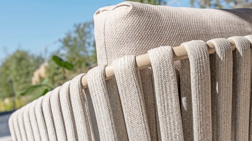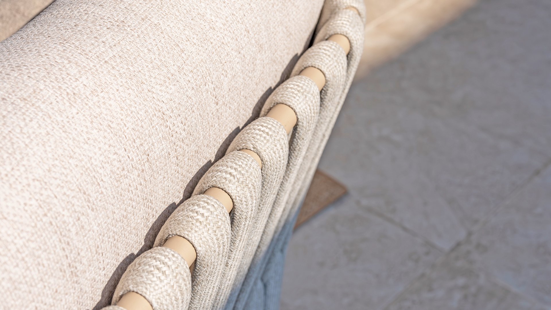 Dit prachtige materiaal is perfect voor buitengebruik, want Taste Rope is niet zo maar een gewone veter waar u uw schoenen mee strikt. Taste gebruikt zeer hoge kwaliteits Rope gemaakt van 100% SDP (Slution Dyed Polypropylene). Dit materiaal is extreem sterk en heeft een zeer klein rekbaarheids percentage. Polyproylene is op olie basis waardoor vuil en verontreiniging nauwelijks in kan dringen, net als onze kussens. Taste biedt exclusieve designs, waarbij hand geweven Rope patronen en technieken worden gebruikt.