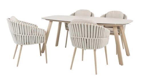 Een touw lijkt wat minder sterk dan bijvoorbeeld een wicker draad. Toch zijn de grondstoffen voor deze materialen bijna gelijk. De rekbaarheid is minimaal, 4 Seasons Outdoor tuinmeubelen met Rope zijn geschikt voor personen met een lichaamsgewicht tot 110 KG. Het is dus een uitzonderlijk sterk materiaal, wel is het belangrijk om voorzichtig te zijn met scherpe voorwerpen. Ons 4SO Rope is bestand tegen de weersinvloeden maar een scherp voorwerp kan je tuinmeubel flink beschadigen. Wij geven maar liefst 5 jaar garantie op fabricage en constructiefouten. Mocht er onverhoopt schade ontstaan dan is het in de meeste gevallen gewoon te repareren. Neem in dat geval altijd contact op met je verkooppunt. 4Seasons biedt exclusieve designs, waarbij hand geweven Rope patronen en technieken worden gebruikt.