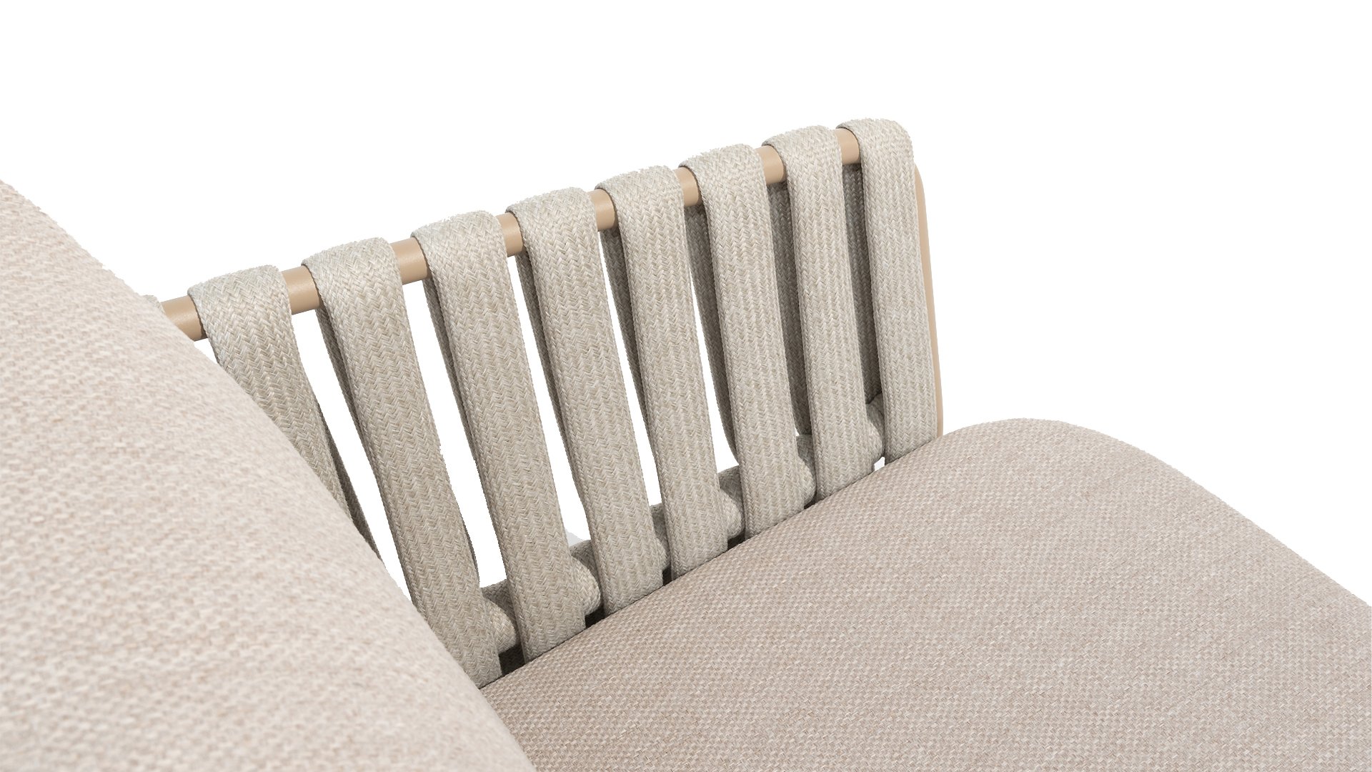 Passie voor Eva Ontworpen met oog voor detail. De dikke, zachte rope banden volgen de mooie organische vorm van het frame. Tel daarbij op de heerlijke comfortabele kussens en je snapt waarom wij lyrisch zijn over de Taste by 4 Seasons Outdoor Eva lounge- én diningset. De Taste 4SO Eva dining stoel heeft een moderne uitstraling. De stoel wordt geleverd inclusief zachte kussens en heeft een eigentijds, aluminium frame met matchende, latte rope bekleding. Het dikke rope combineert mooi met het latte frame en zorgt, samen met de kussens, voor een comfortabel zitcomfort. Een kleur die zich het beste laat beschrijven als smaakvol beige. Hier zijn enkele kenmerken die deze dining stoel tot een favoriet maken: 5 jaar garantie, makkelijk verplaatsbaar, moderne look, natuurlijke uitstraling, weerbestendig, inclusief kussen(s), onderhoudsarm.