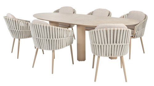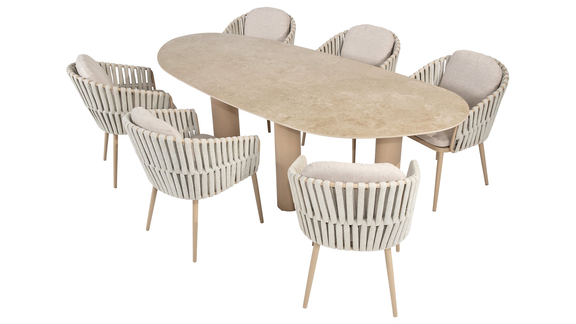 1 x Taste 4Seasons Estate tafel mango vorm keramiek-alu Latte 240x105cm