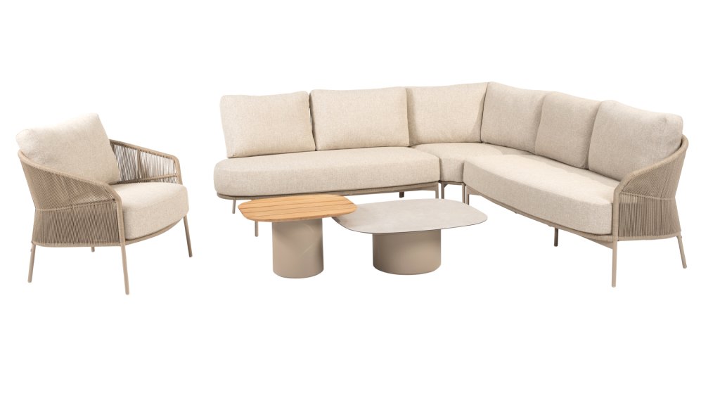 Laat je stijl spreken met Florence. Het prachtige touwdesign wordt gecombineerd met luxe kussens voor de perfecte combinatie van stijl en comfort. Geniet van ultieme ontspanning en kom helemaal tot rust deze zomer. Verkrijgbaar in twee elegante kleuren: Taste Florence Terre Lounge – een warme, aardse tint die perfect blendt met natuurlijke tuinelementen. Taste Florence Latte Lounge – een lichte, elegante kleur die zorgt voor een frisse, zomerse look.