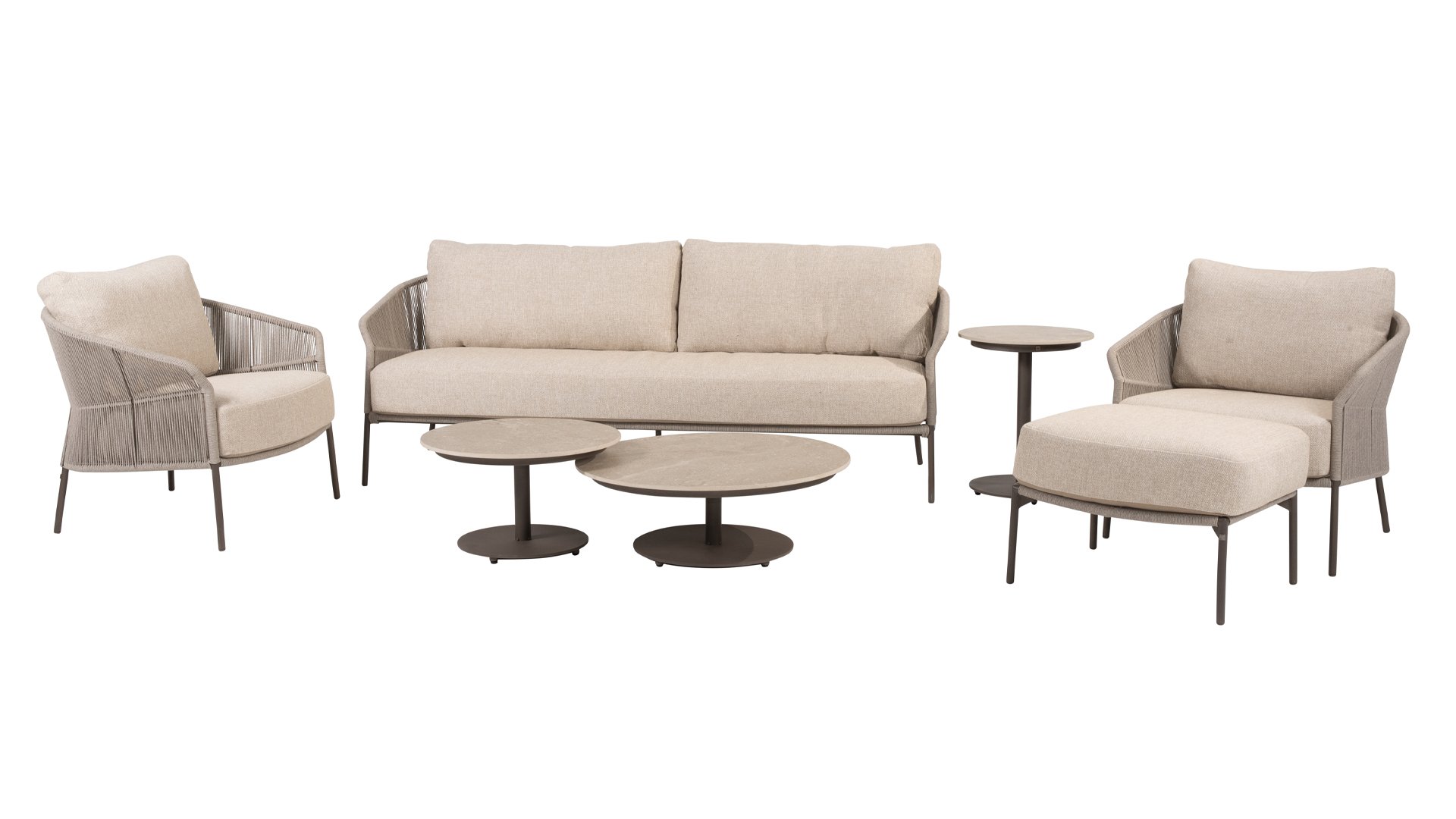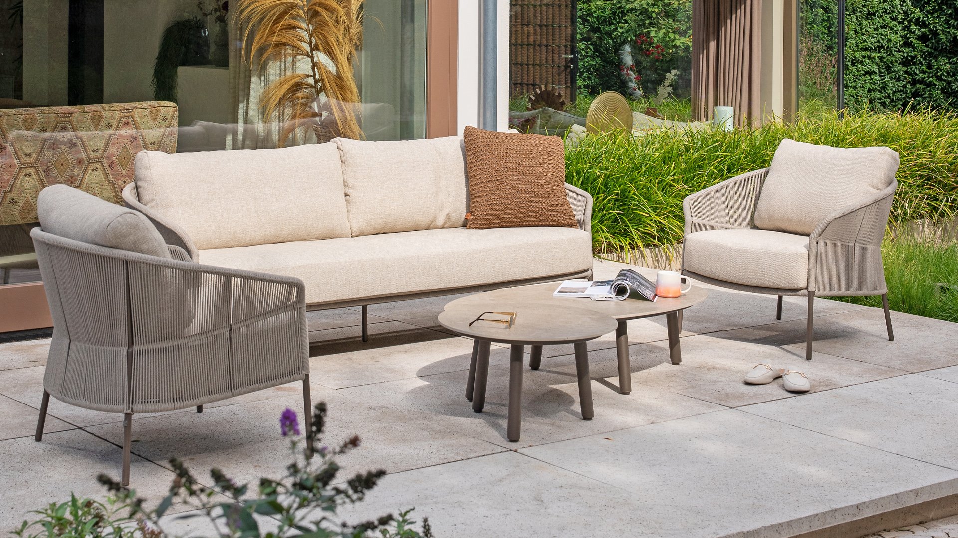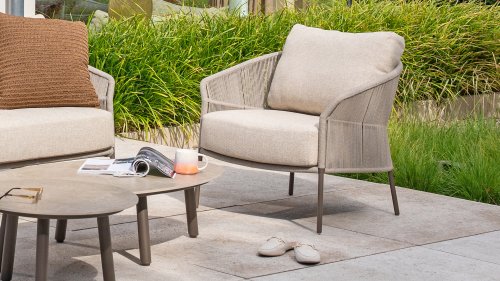 Laat je stijl spreken met Florence. Het prachtige touwdesign wordt gecombineerd met luxe kussens voor de perfecte combinatie van stijl en comfort. Geniet van ultieme ontspanning en kom helemaal tot rust deze zomer.Verkrijgbaar in twee elegante kleuren: Taste Florence Terre Lounge– een warme, aardse tint die perfect blendt met natuurlijke tuinelementen. Taste Florence Latte Lounge– een lichte, elegante kleur die zorgt voor een frisse, zomerse look.