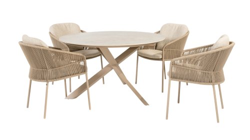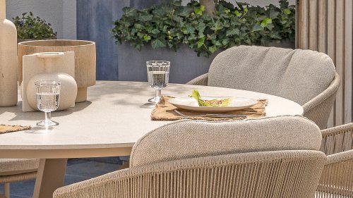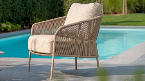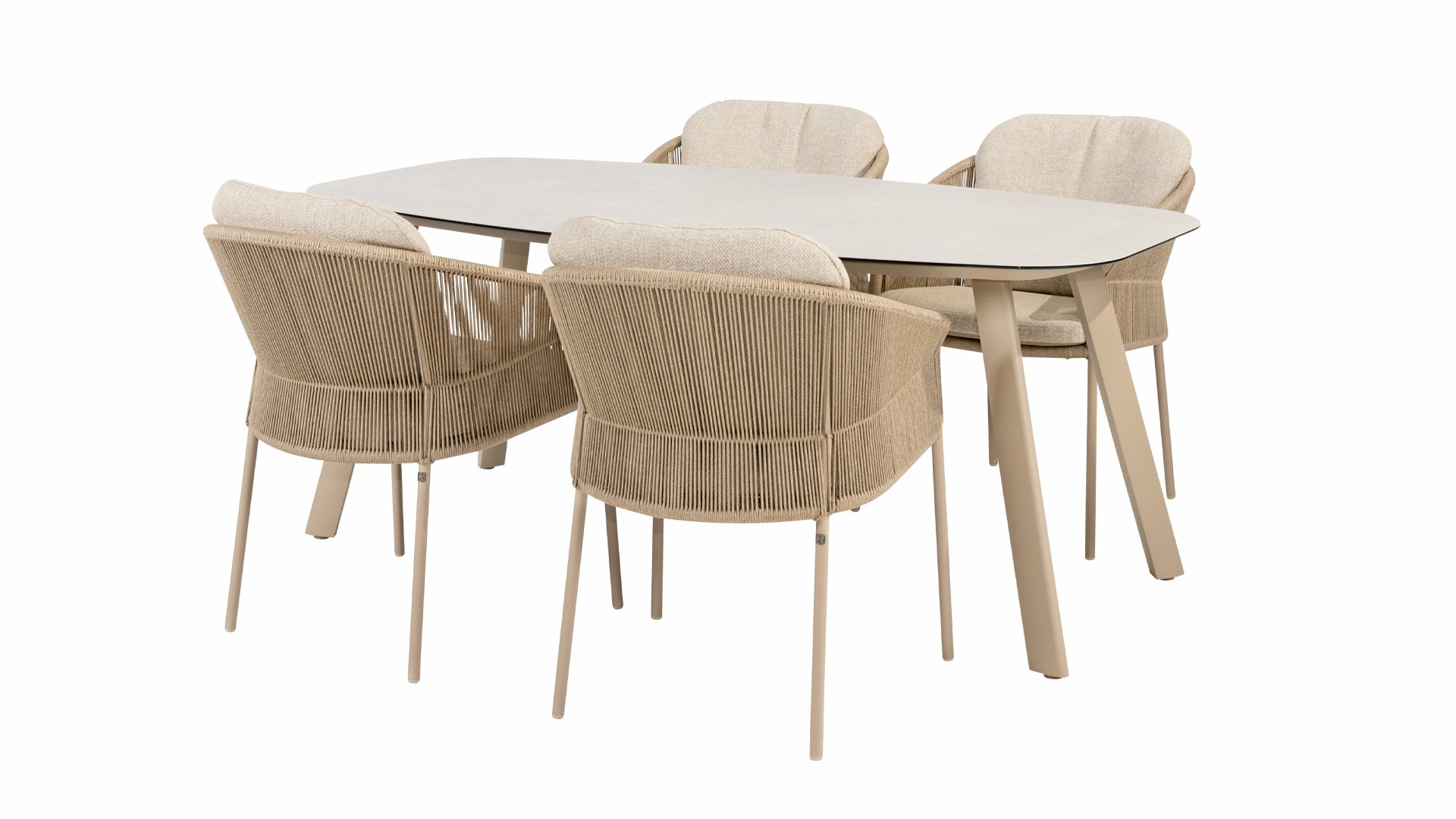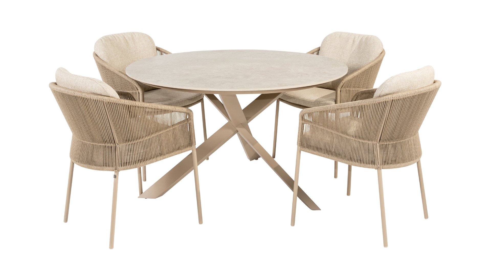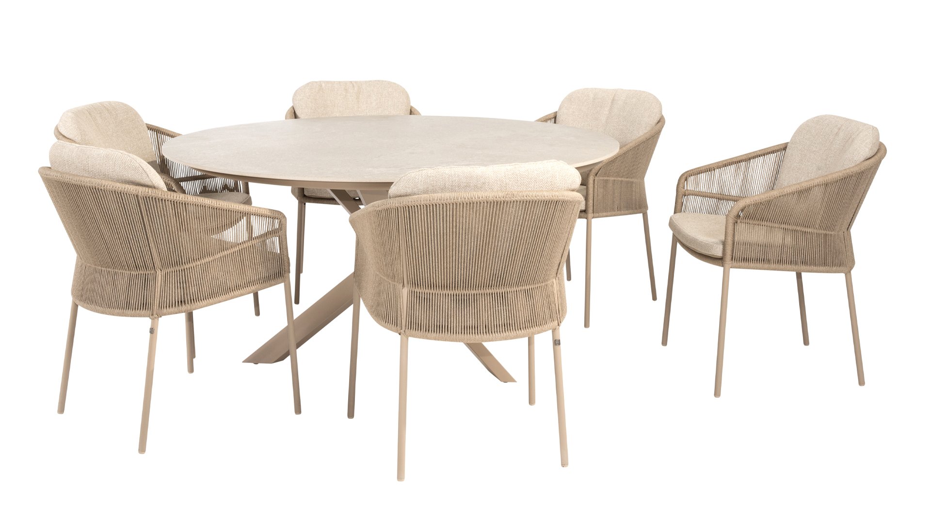 Geïnspireerd door de tijdloze charme van Italië. Florence wordt gekenmerkt door het strak geweven touwpatroon en de verfijnde splitsing tussen rugleuning en zitting, wat zorgt voor een modern en elegant effect. De comfortabele kussens bieden uitstekend zitcomfort, waardoor deze eetkamerset perfect is voor lange, ontspannende momenten buitenshuis. Verkrijgbaar in twee elegante kleuren: Taste 4SO Florence Terre Dining – een warme, aardse tint die perfect blendt met natuurlijke tuinelementen. Taste Florence Latte Dining – een lichte, elegante kleur die zorgt voor een frisse, zomerse look.