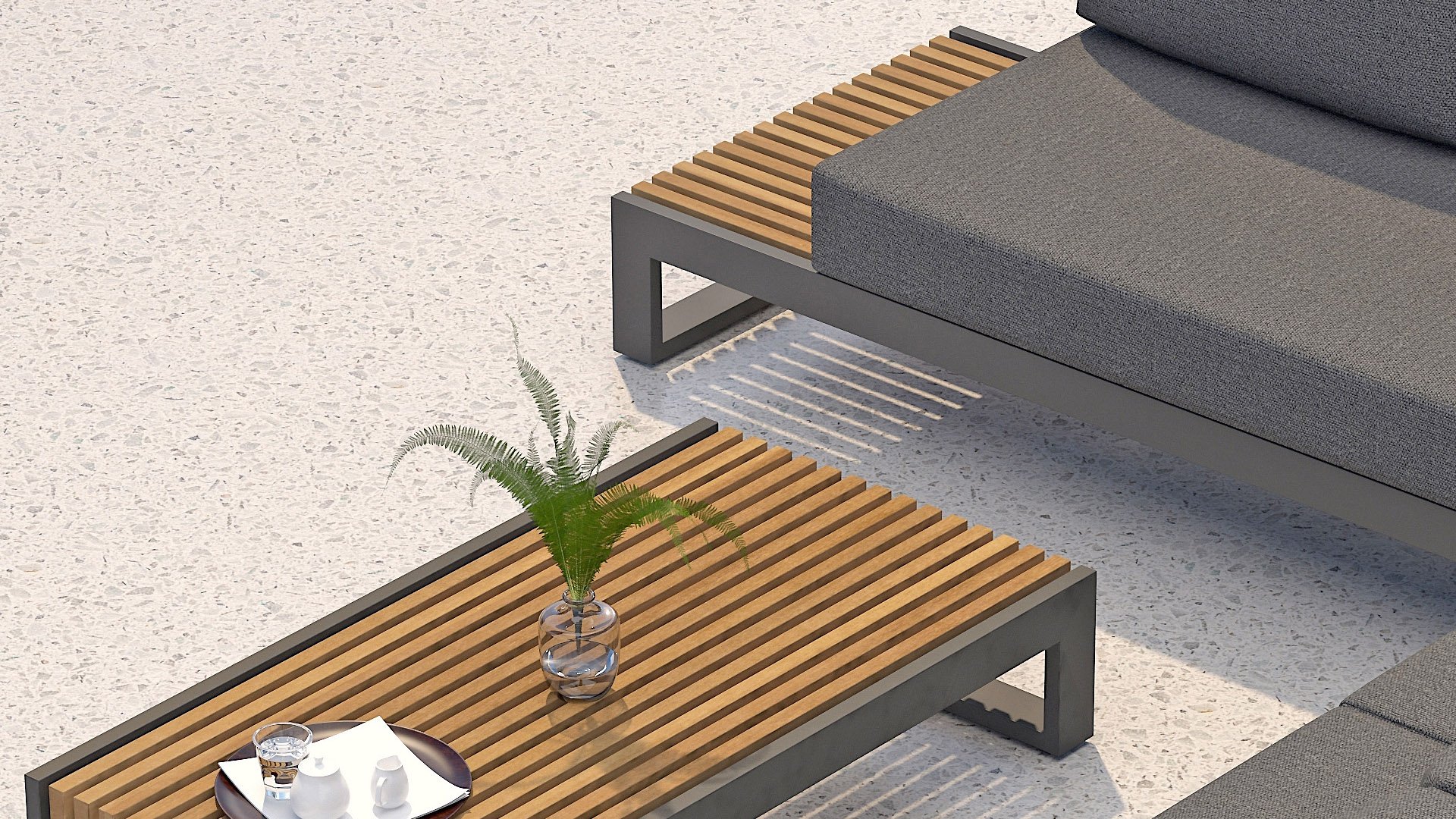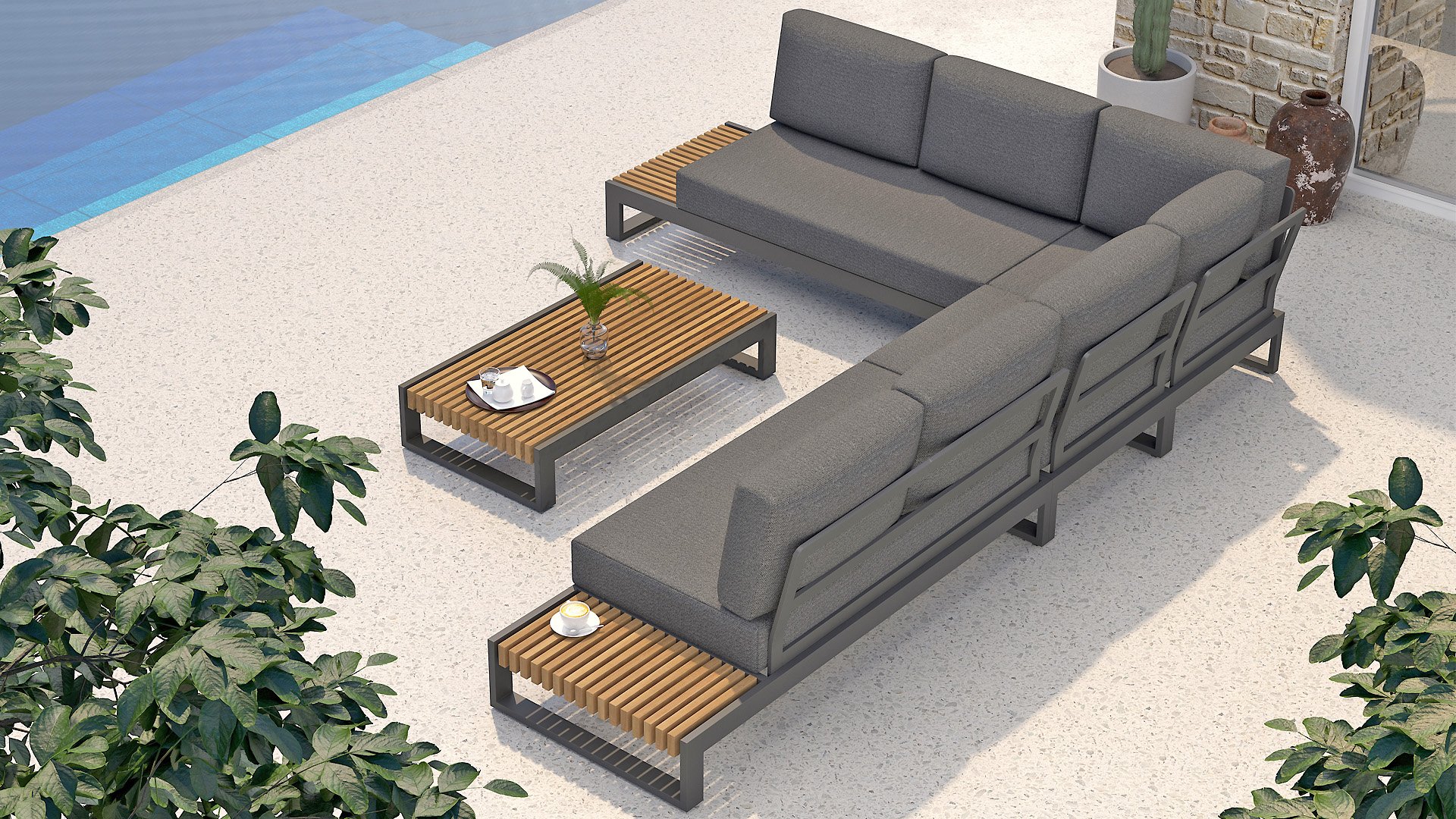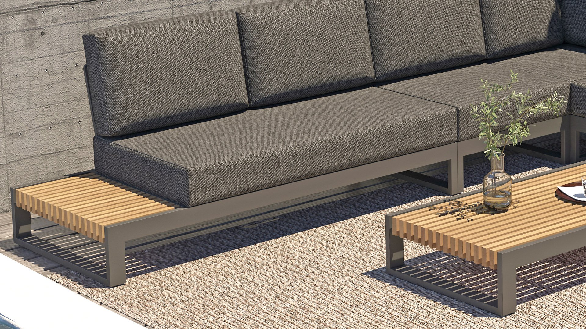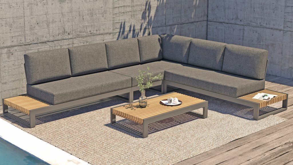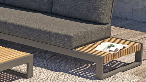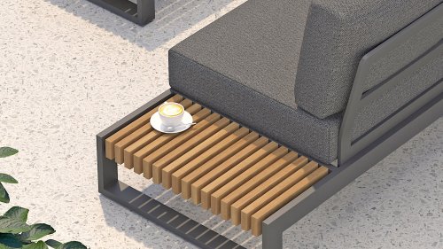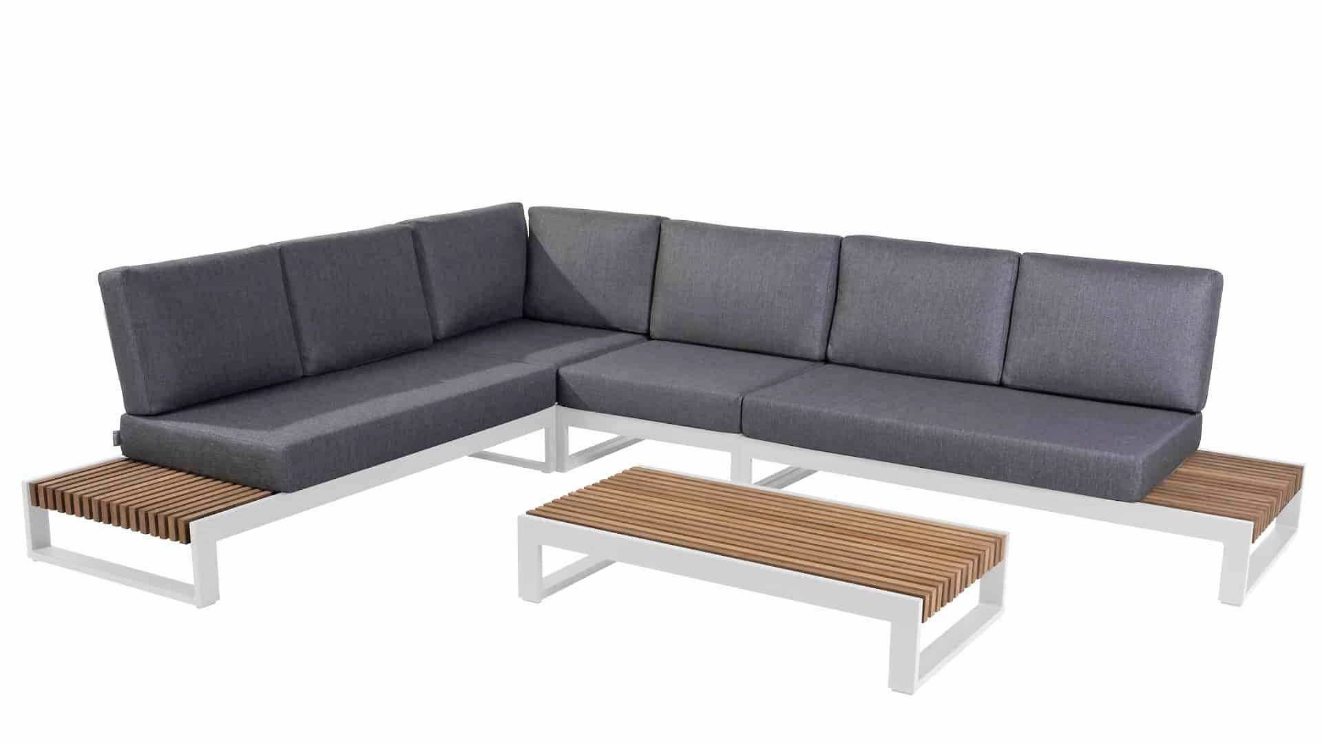 Het frame is gemaakt van gepoedercoat aluminium, in combinatie met hoogwaardig, teakhouten panelen aan de zijkant. De smalle latten van het teakhout vallen direct op. Door de open zijkanten met teakhouten blad heeft u uw drankje altijd bij de hand! De kussens in de Taste 4Seasons Kioto loungeset zijn zeer comfortabel en hebben een vuil- en waterafstotende coating, waardoor ze bestand zijn tegen een regenbui.