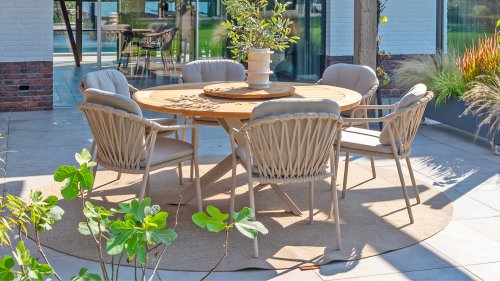 De sterke stof is bestand tegen een regenbui, uitritsbaar en wasbaar. Handig, maar let wel: de kussens zijn waterafstotend. Laat je ze lang in de regen liggen, dan kunnen ze alsnog nat worden aan de binnenkant.